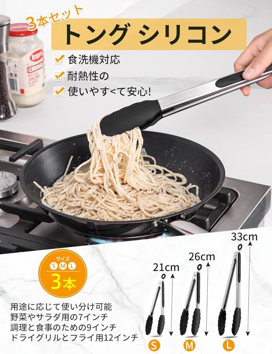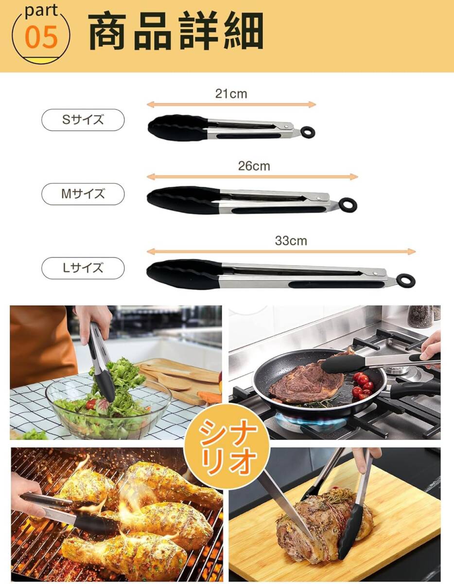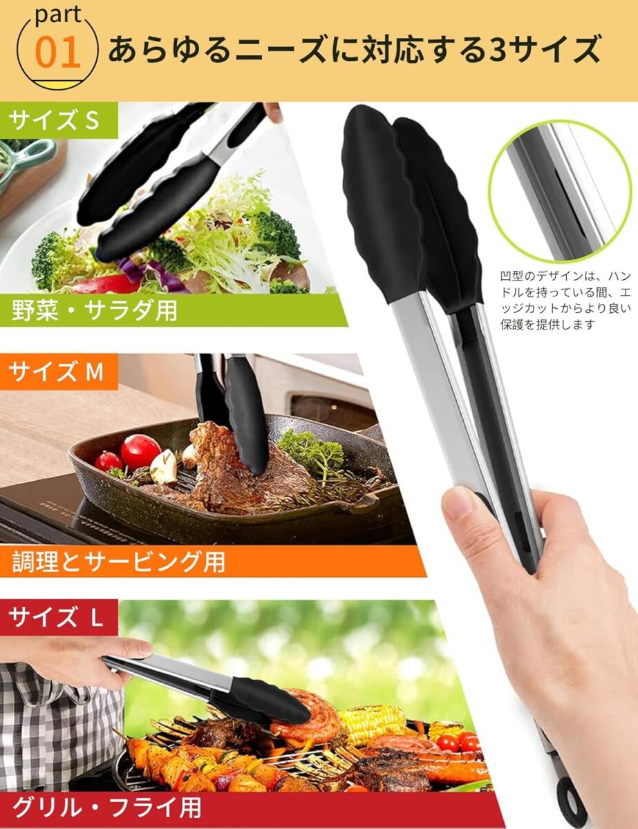 aninako トング シリコン 3サイズ トング バーベキュー 焼き肉/バーベキュー用 耐熱抗菌 ロック収納 調理器具