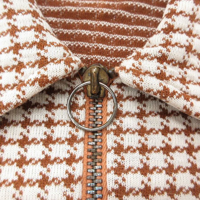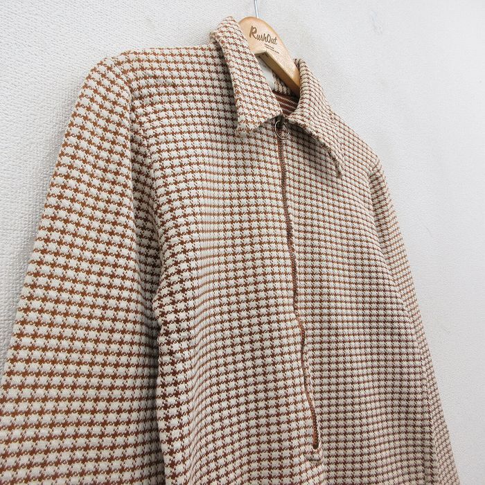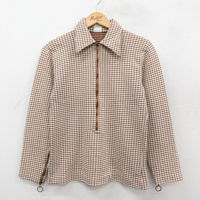 【商品名】 S★古着 ピエールカルダン 長袖 ハーフジップ トップス メンズ 70年代 70s 茶他 チェック