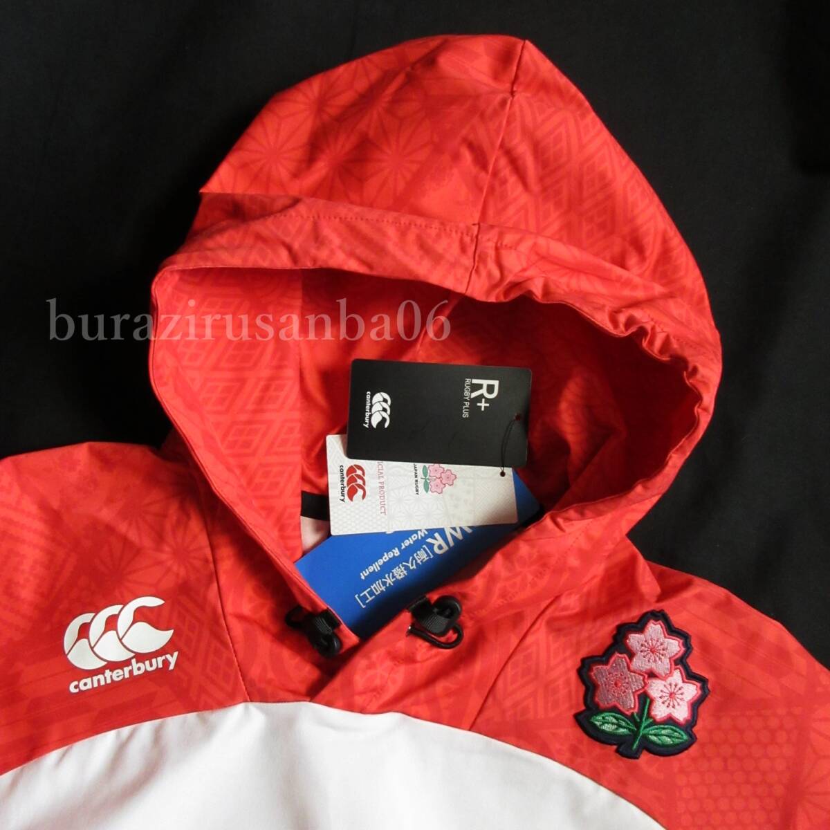 カンタベリー ジャパンアールプラス デュアルフーディ。 ラグビー日本代表 オフィシャルライセンスチームキットモデルです。 吉祥文様が入った フーディタイプのアウター。 春先から秋口に使えそうな 薄手のアウターです。 ストレッチあり。 両サイドにポケット。 DWR(耐久撥水加工)が施されているので、 急な天候変化にも対応できます。 ▼吉祥文様は柄物の為 個体差がございますのでご了承ください ◇(株)ゴールドウイン正規品 ◇状態:未使用 下げ札あり 外装無し ◇定価:13,200円 税込 ◇素材:ポリエステル100% ◇カラー:10 ホワイト ★サイズ表記 メンズ L タグ表記 チェスト 92-100cm 身長 170-180cm 実寸は以下になります 身幅 59.5cm 着丈 65cm(背面) 裄丈 86cm ※多少の誤差はご了承ください ※商品寸法には個体差による若干の誤差がございます ★ご新規 評価一桁の方は入札ご遠慮ください ●モニター環境により実際のお色と異なる場合がございます ●採寸方法は全アイテム「平置き」です。 採寸方法により、若干の誤差(伸縮による1~2センチの誤差)は あると思われますがご了承下さい | |||