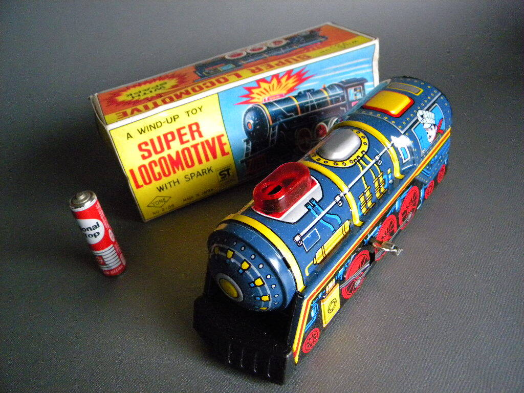 当時物 ★★蒸気機関車 17㎝ 作動良好 ゼンマイ 発火走行 !! SUPER LOCOMOTIVE 鉄道模型 電車 YONE JAPAN ★★未使用 デッドストック品