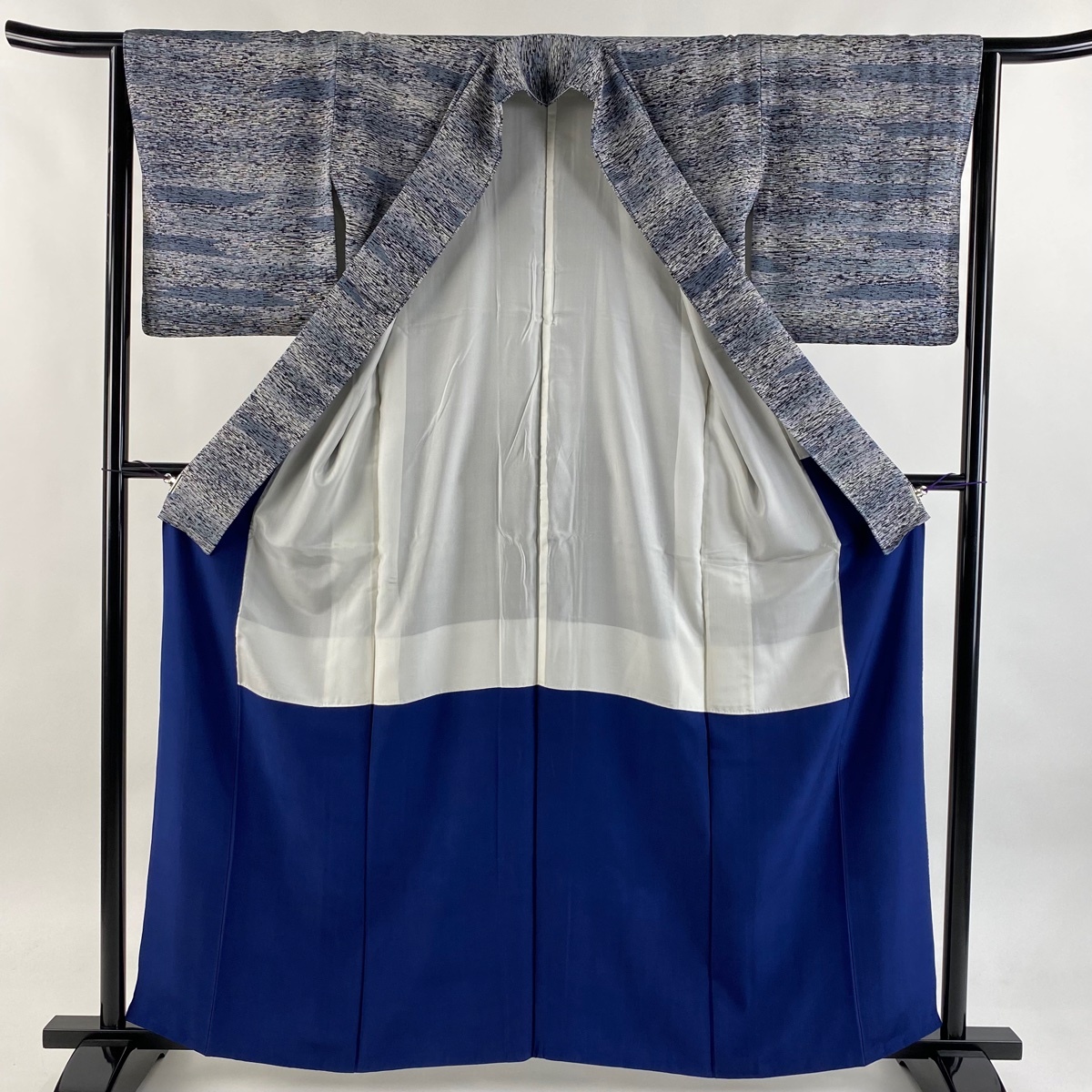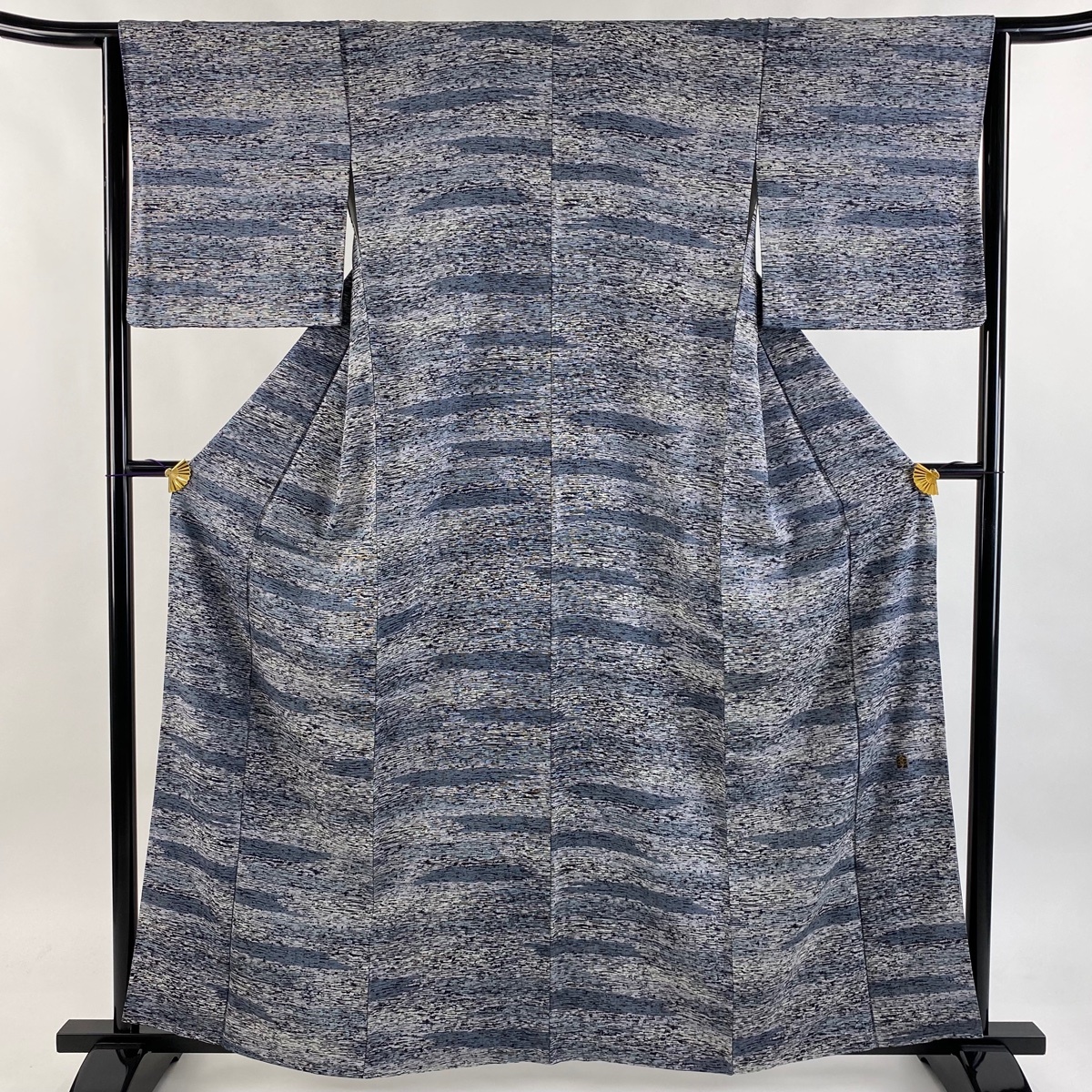 | 小紋 美品 秀品 落款 幾何学模様 青灰色 袷 身丈160 裄丈64 M 正絹 【中古】 |