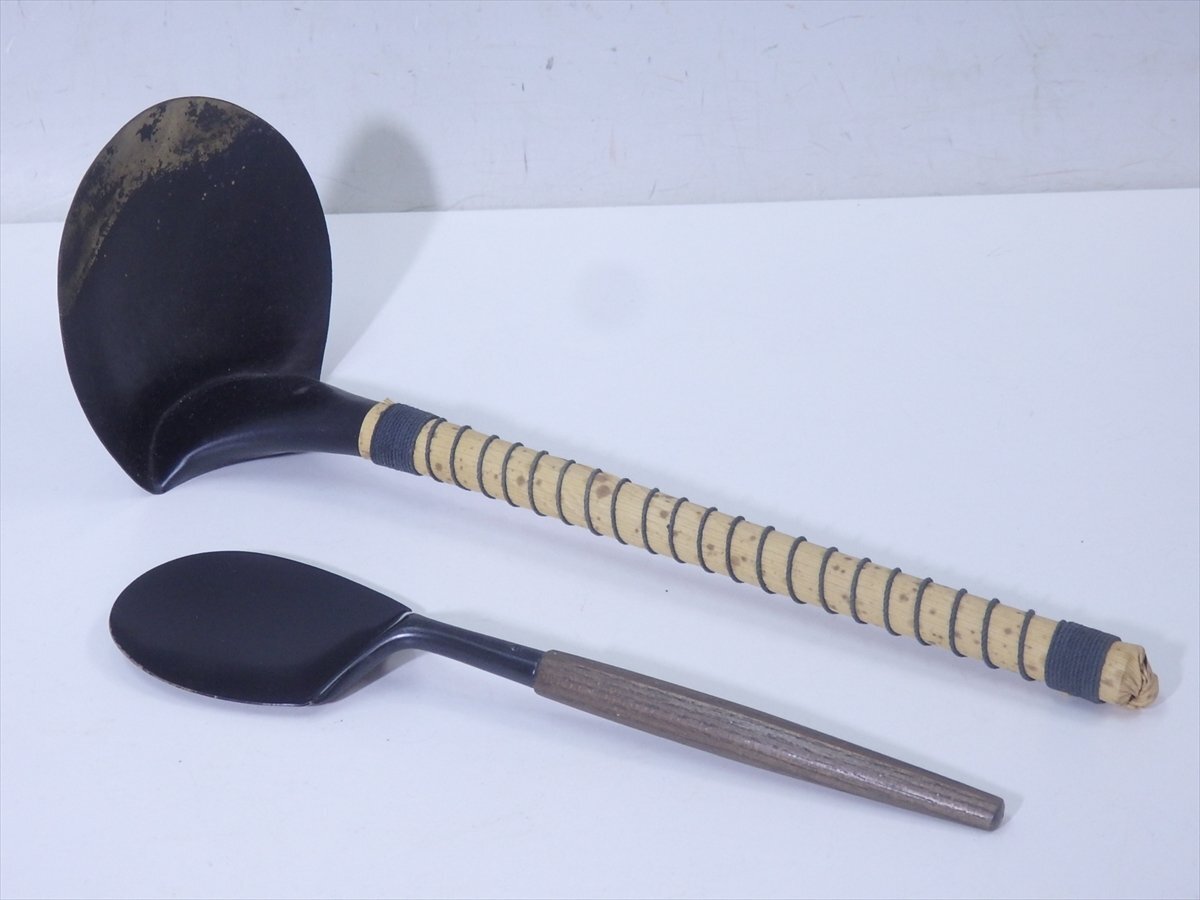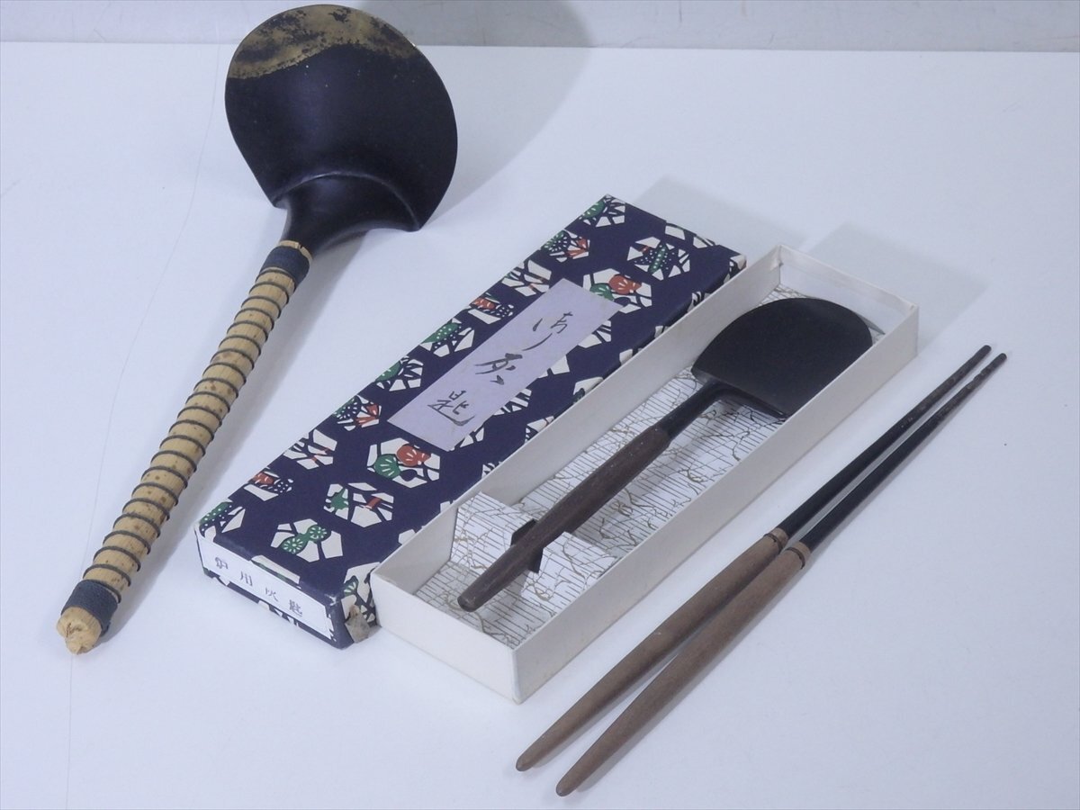 【管理番号5-1022203-8 スタッフコメント:iy】  ☆底取と、灰匙の金属部分は銅製、底取は変色、塗装の剥がれあり。火箸の金属部分は鉄製。使用感があります。お安くから出品していますのでコンディションはご理解のうえノークレームノーリターンでお願いします。