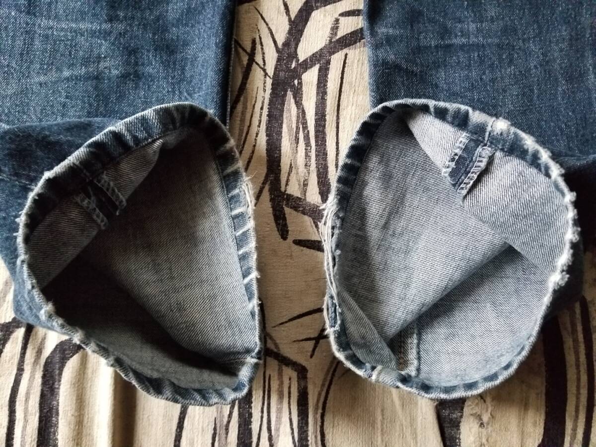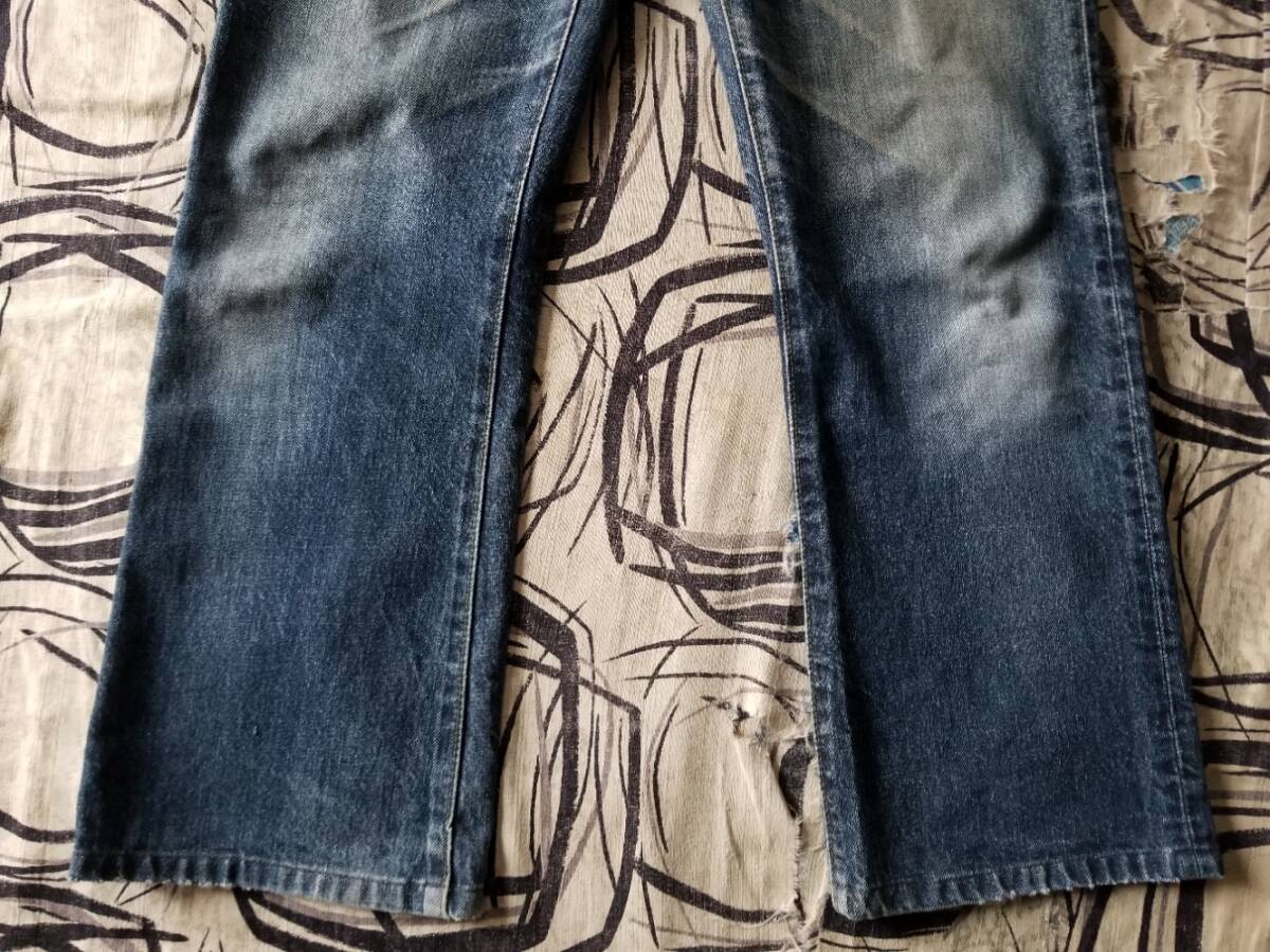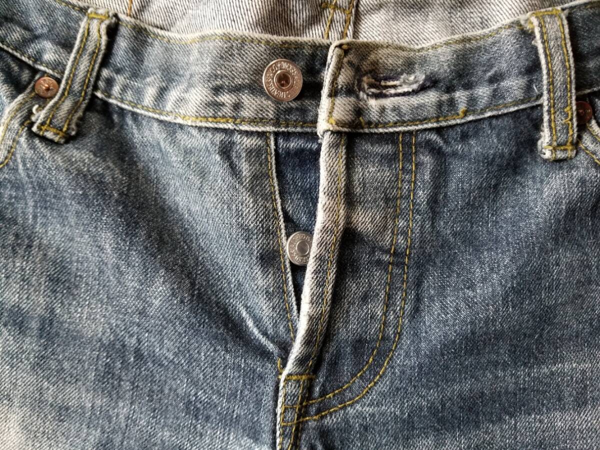 左太もも髭ラインに解れあり。生地が薄くなっているのが伺えます。