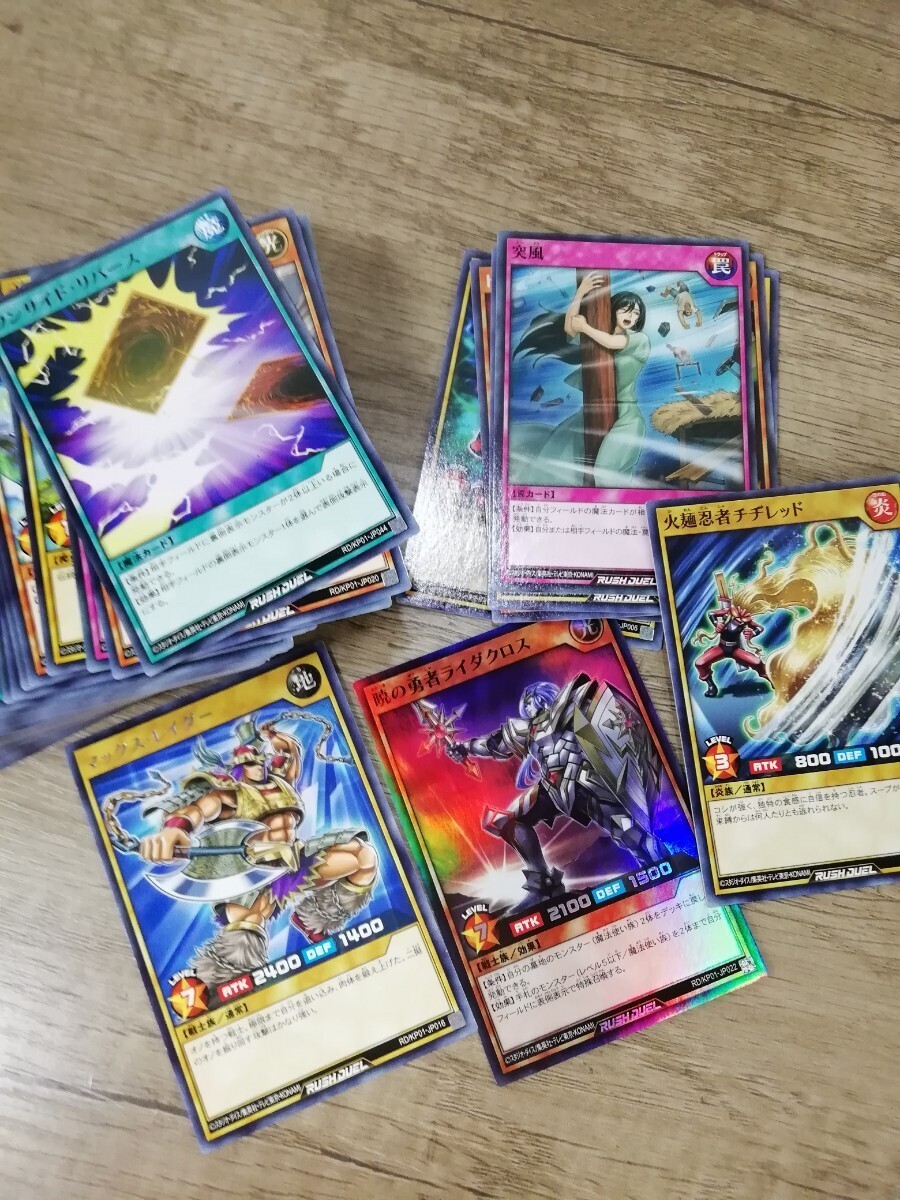 KONAMI遊戯王ラッシュデュエルのカードまとめ売りです。モンスター、魔法、罠カード合わせて約70枚ほど見られます。詳細は分かりません。コナミの遊戯王カードですが、OCGとは異なるカードゲームですのでご注意願います。40~60枚以上あるのでデッキを作ることができそうです。キズなどありますのであくまでプレーイング用としてお考えください。おまけのストレージボックスに入れて発送します。カード200枚くらいは入りそうです。傷みや曲がりなどありますのであくまでおまけとお考えください(画像5、6、7、8、9、10)
