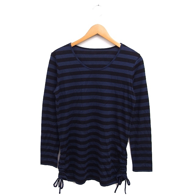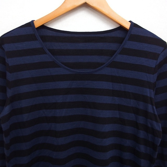 コムサデモード COMME CA DU MODE ボーダー柄 カットソー 長袖 Uネック ウール混 11 ネイビー 紺 ブラック 黒 /FT24 レディース