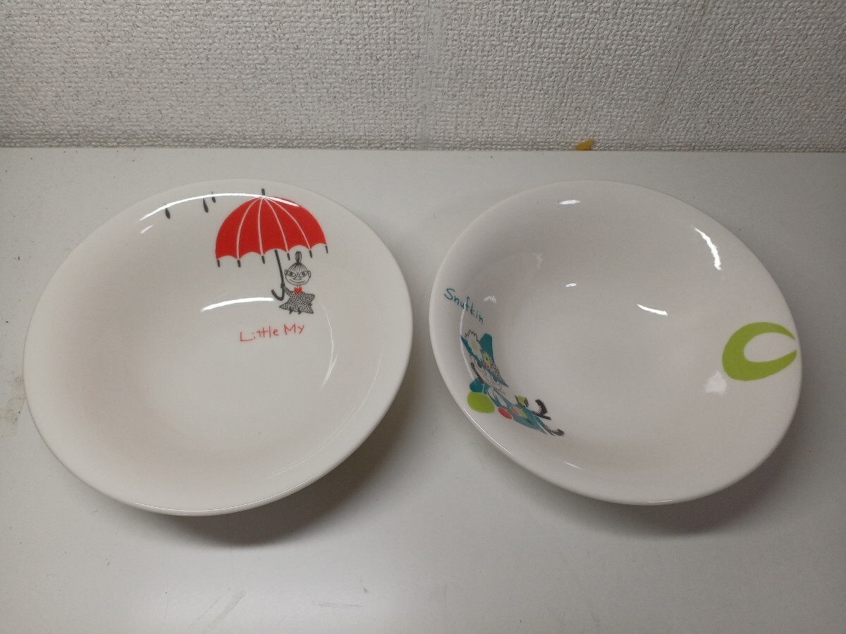 特徴:ムーミンのキャラクターであるスナフキンとリトルミイが描かれた、楕円形の皿です。用途:パスタやカレーの盛り付けに適しています。
