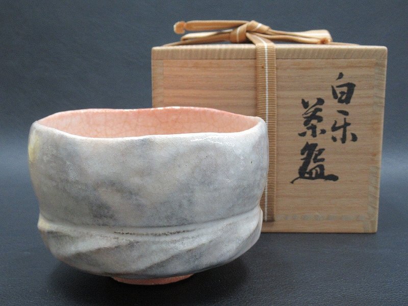 D3270 小川裕起夫 三代 小川長楽 白楽 茶碗 抹茶碗 茶器 茶道具 共箱 |