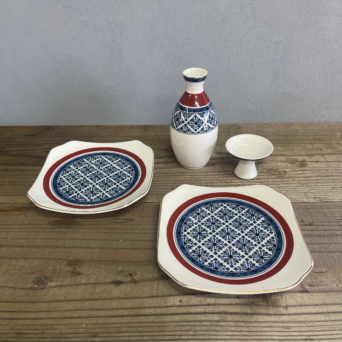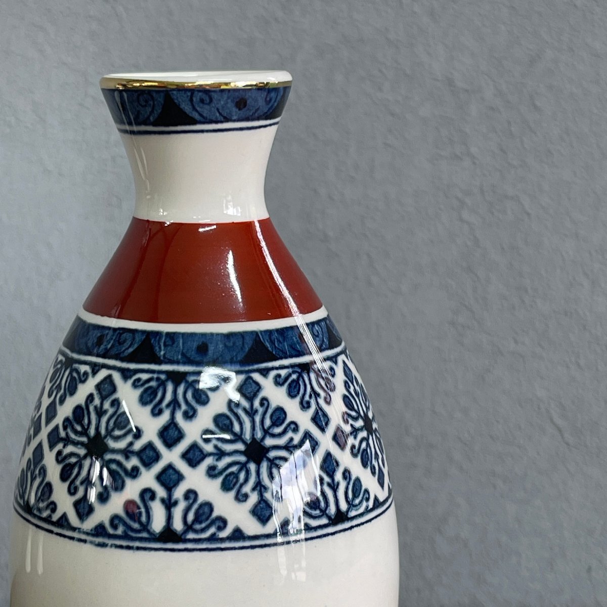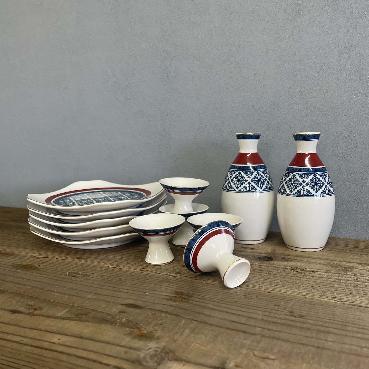 色使い、デザインともに、レトロでかわいい徳利セットです。 洋風デザインは珍しいです。 サイズ 徳利:高さ4.5 お猪口:直径6×高さ4.5 発送サイズ60