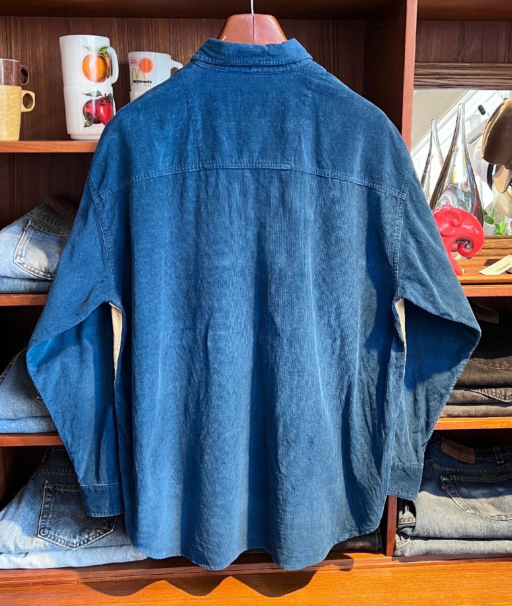 ビンテージ ARIZONA アリゾナ 青×ベージュ×エンジ コーデュロイ 切り返し ロングスリーブシャツ ボタンダウンシャツ L 検 GAP 90's
