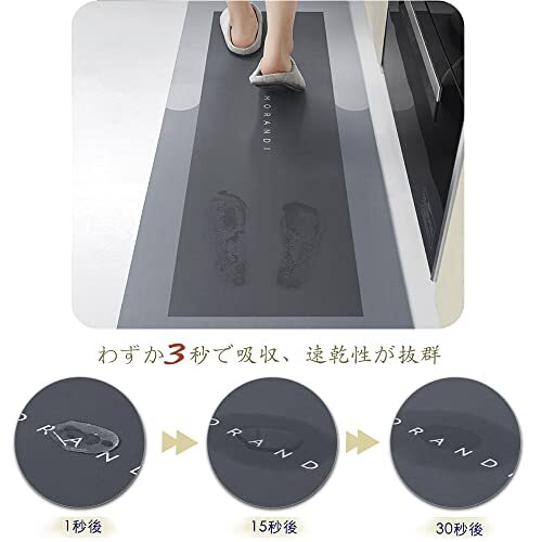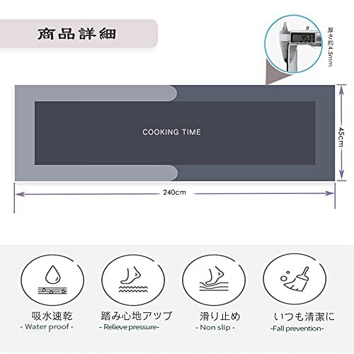 【カビ、ダニが発生しにくい】よく料理をする人ならわかると思うが、料理をつくる時、水や油が飛び散ってしまいキッチンの床を汚してしまう。このキッチンマットがハイテク素材を採用して、汚れを吸収してくれることで、床のシミや汚れを防げて、調理中に飛び散りがちな水分や油分を受け止めてくれます。