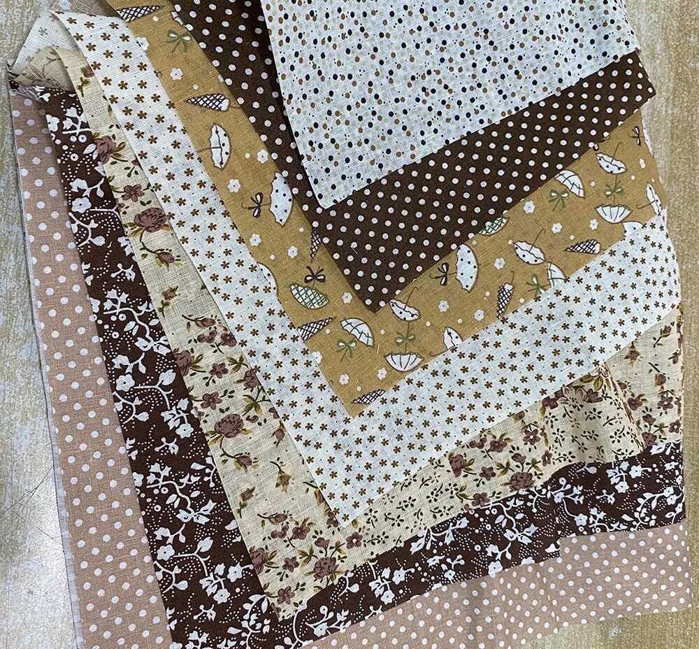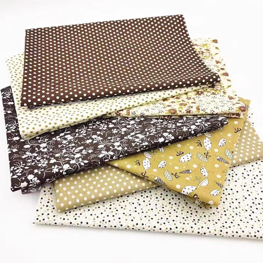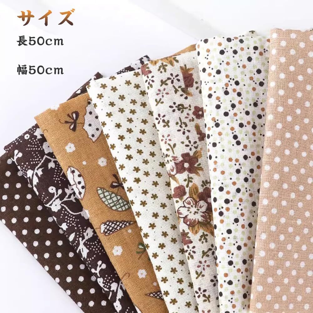 ブラウン色 サムコス 7枚図案セット 生地 布 50×50cm 花柄 パッチワーク布 カットクロス 綿 DIY手芸用 ハンドメイド 小花 はぎれ