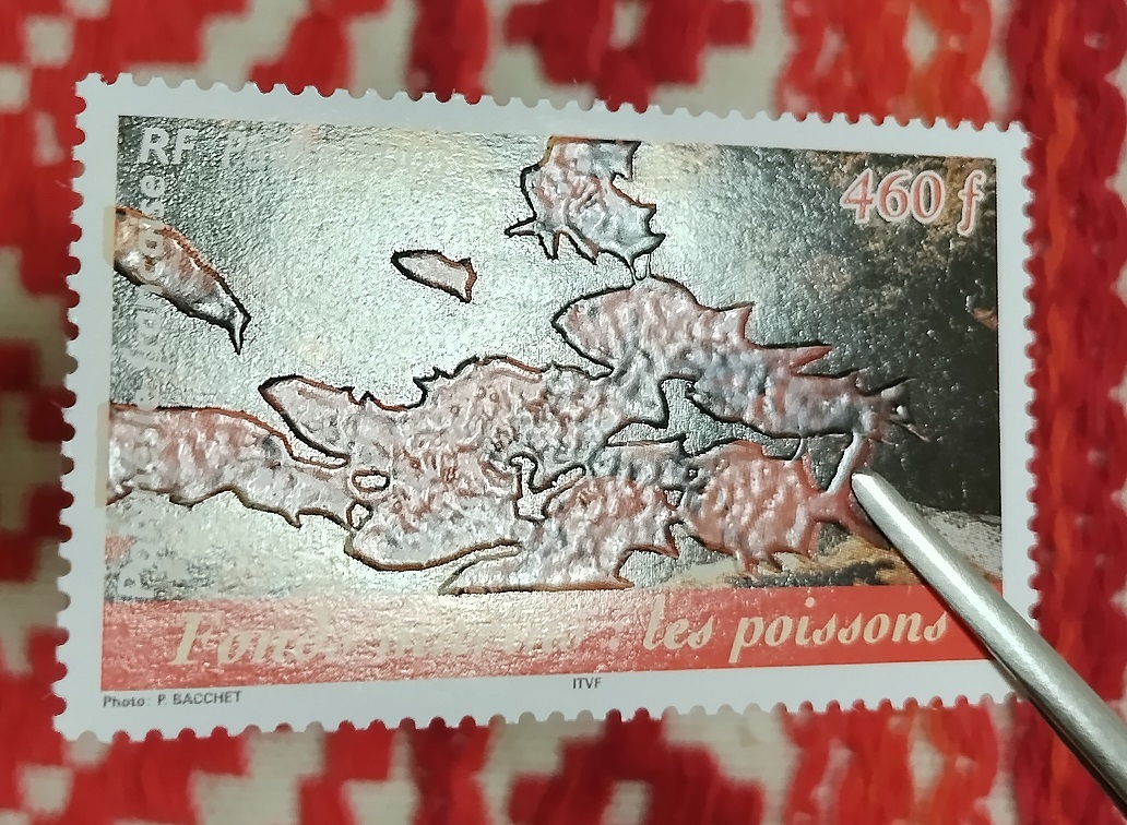 画像2のように、魚の部分に光沢のある加工が施されています。