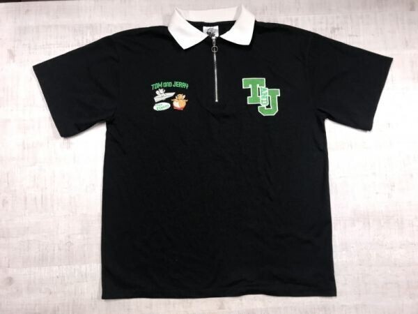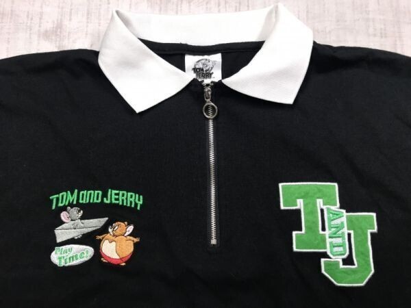 トムとジェリー TOM&JERRY ストリート スポーツ カレッジ キャラクター 古着 刺繍 ハーフジップ レタード 半袖ポロシャツ レディース M 黒 です。