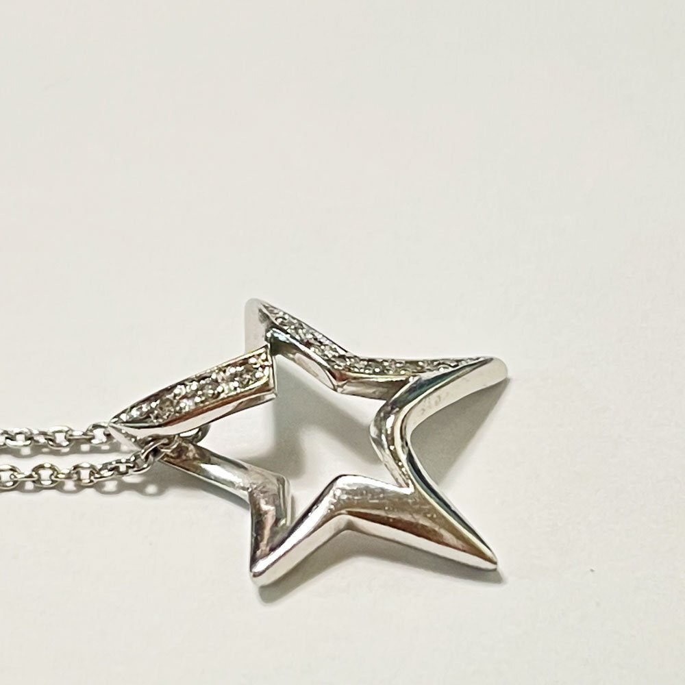 ブランド名 STARJEWELRY スタージュエリー 説明 星のデザインのネックレスです。ダイヤモンドもあしらわれた可愛いネックレスです。ホワイトゴールドカラーのジュエリーです。
