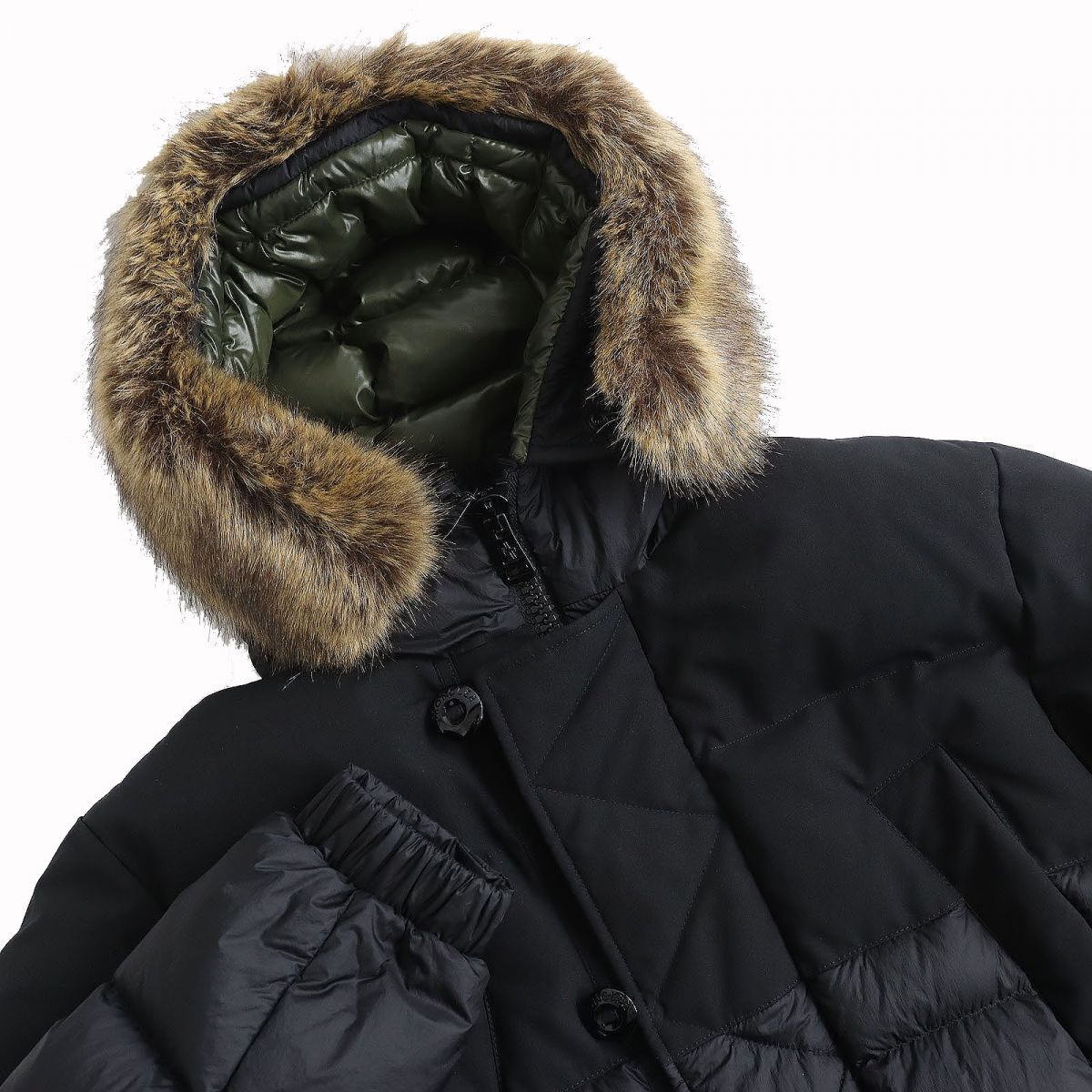| 素材 (material) | 表地:ナイロン100% 一部:羊毛100% 裏地:ナイロン100% 一部:ポリエステル85% :コットン15% :アクリル系93% :ポリエステル7% 中綿:ダウン90% :フェザー10% ※写真参照 | ||||||||||||||||