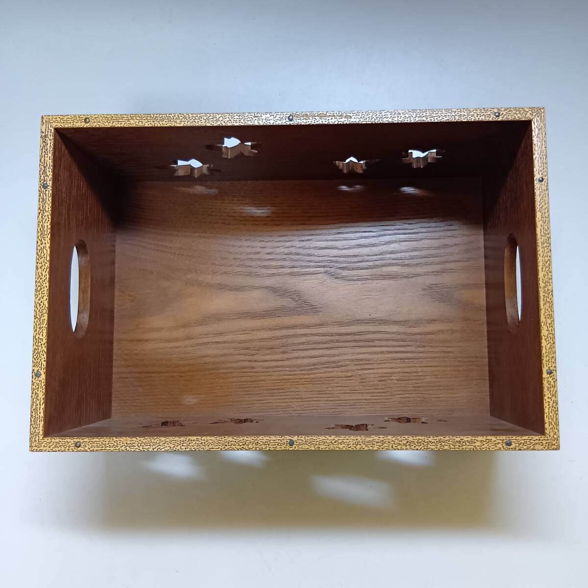 【B-10】石州好 山本一峰 雲錦透かし 桑 莨盆 煙草盆 茶道具 | |||