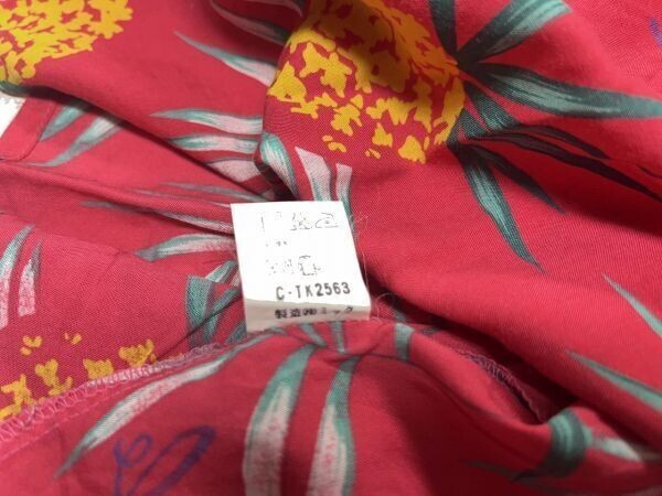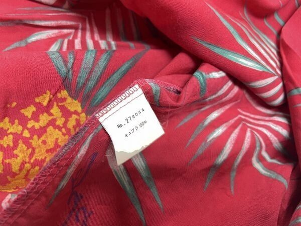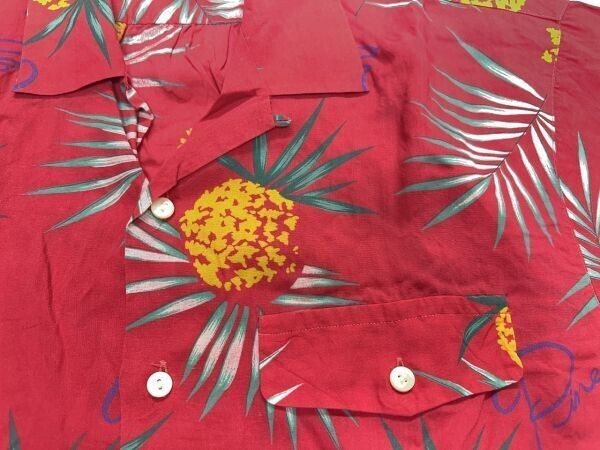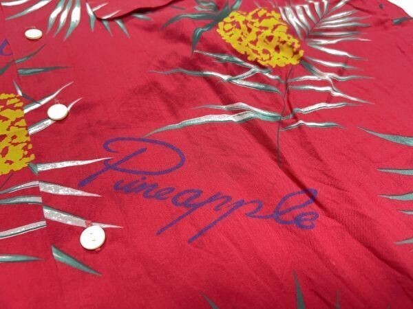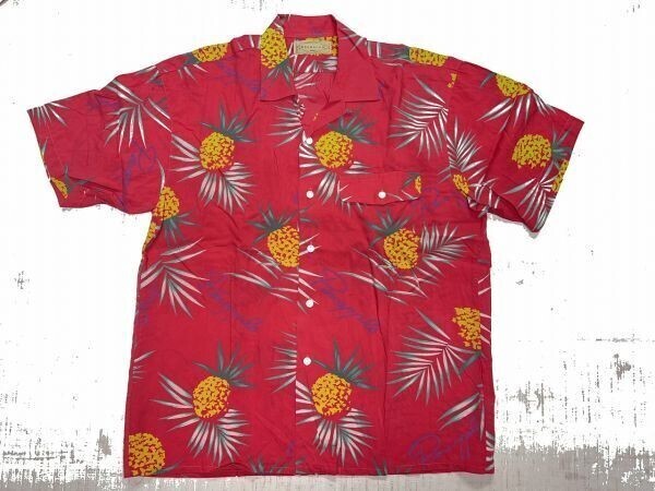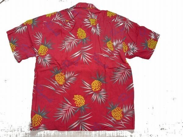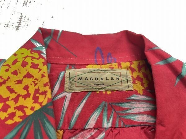 マグダレン MAGDALEN HOMME オールド アメカジ 古着 総柄 パイナップル ヤシの木 ハワイ HAWAII 半袖アロハシャツ メンズ キュブラ100% 赤 です。