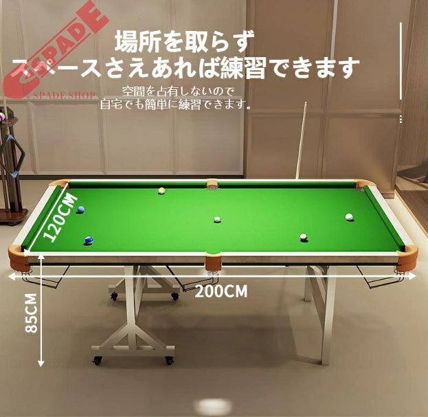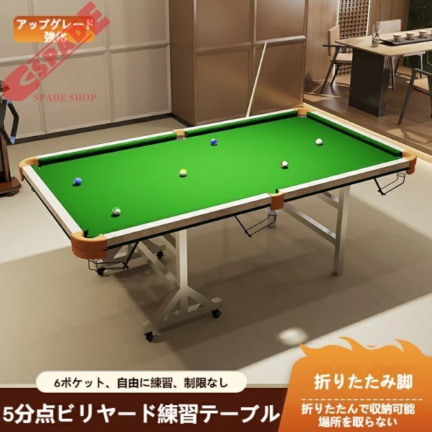 家庭用ビリヤード練習テーブル、スタンド式折りたたみタイプ、大人向けブラックエイトボール、5分点練習、クリアリングの戦略、ローヒット