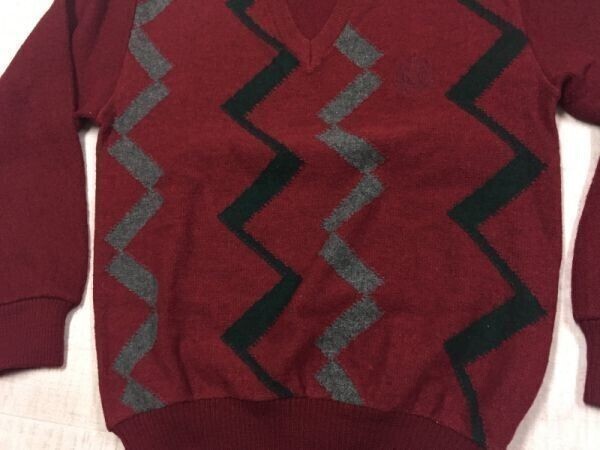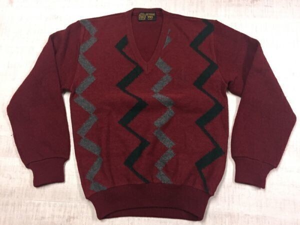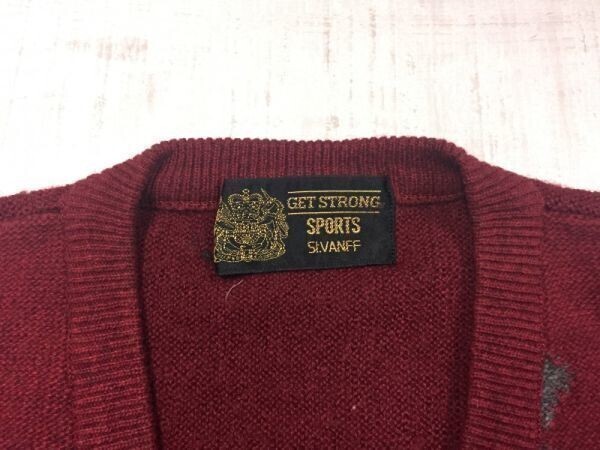 GET STRONG SPORTS St.VANFF オールド レトロ トラッド 古着 ジャガード Vネック ウール ニット セーター メンズ 日本製 エンジ