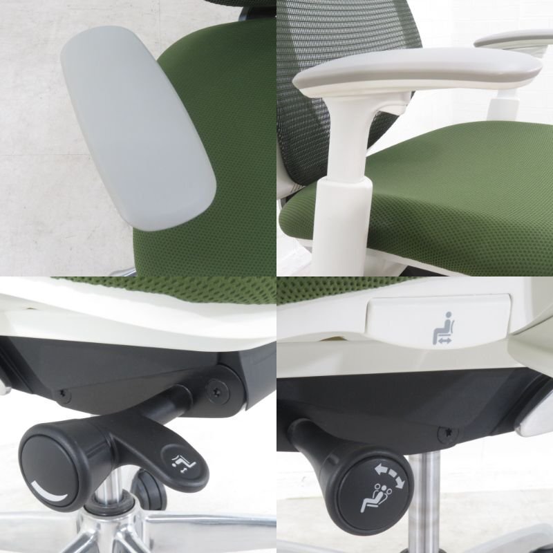 | 機 能 | 2014年製 アジャストアーム 座面昇降・奥行調整 リクライニング段階固定・強弱調整 前傾機能付きシンクロリクライニング 前傾チルト |