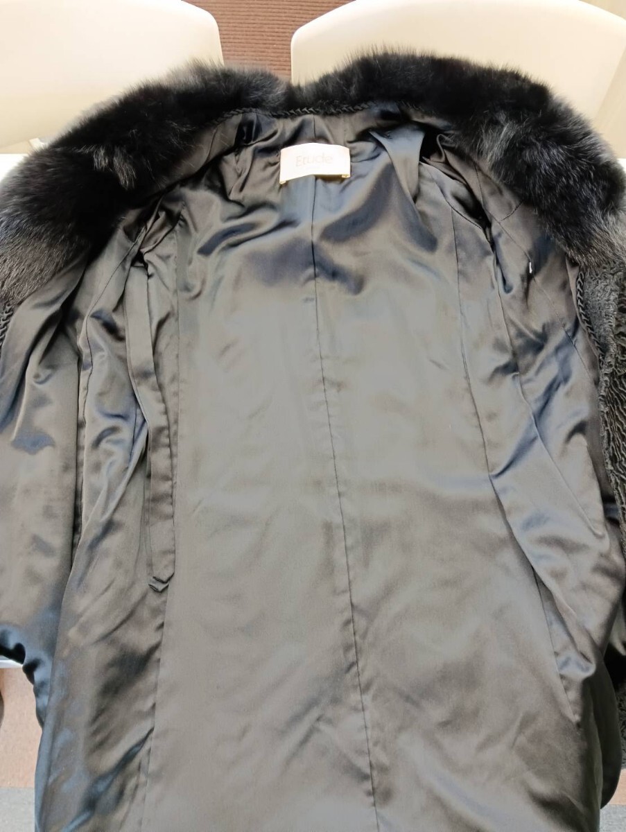 【中古品】オンワード Etude ファーコート ロングコート ブラック 現状品