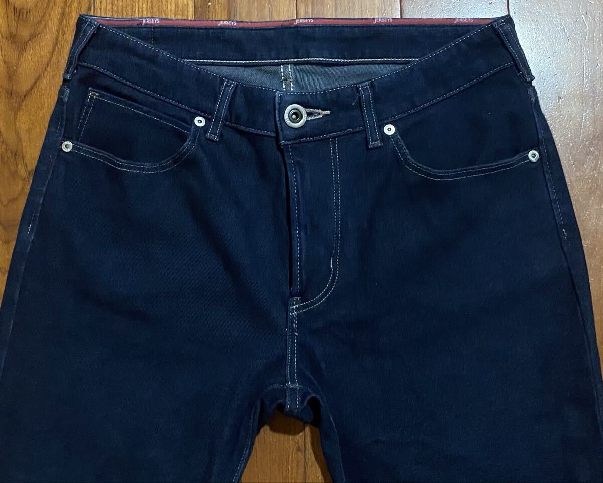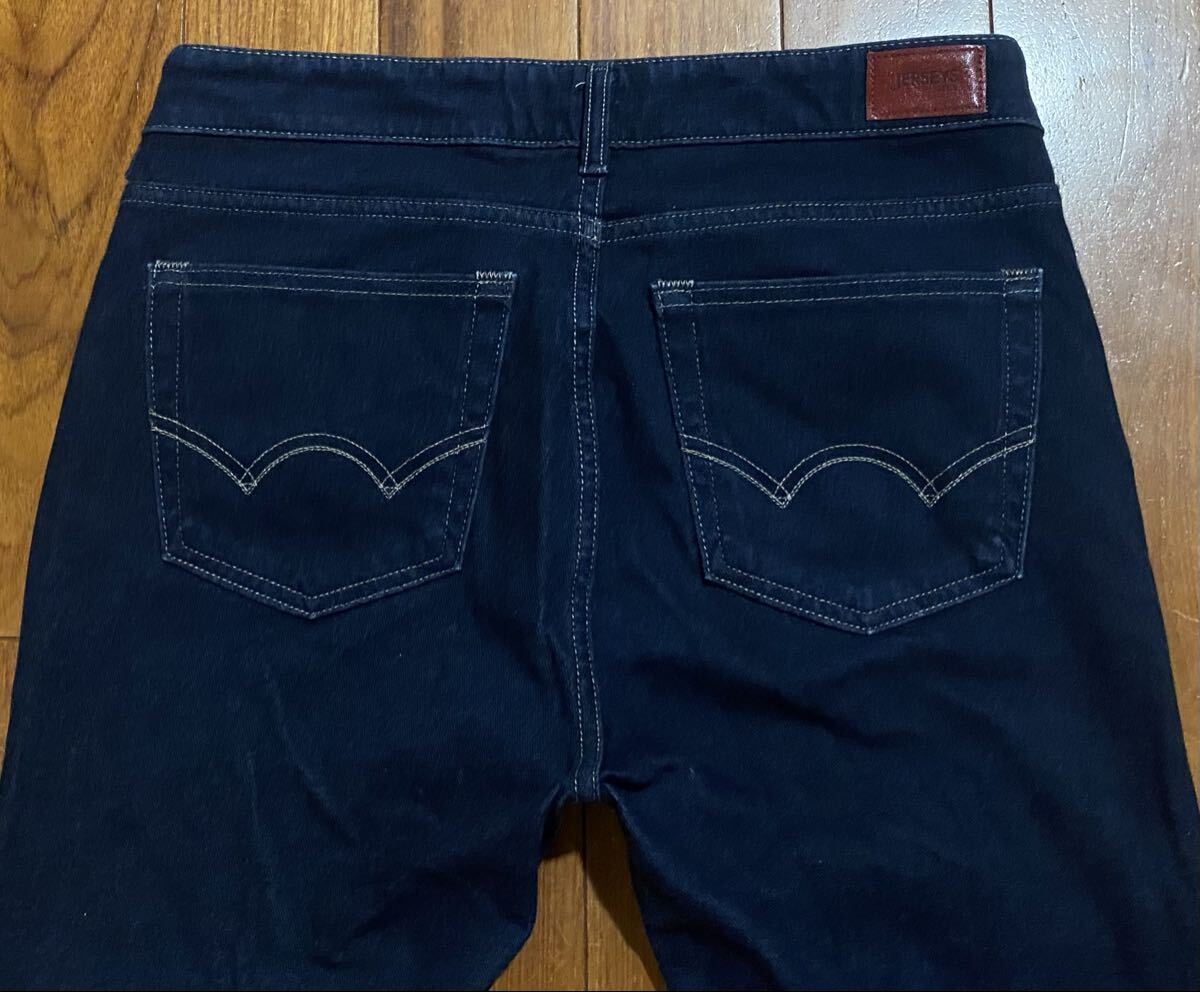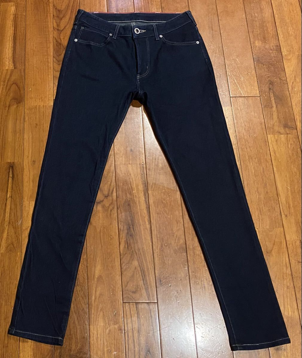 エドウィンのジャージーズ ストレッチ スキニーデニムパンツ、No.JWH06です。色はインディゴブルーです。USEDですが状態は良いです(10段階中8程度)。生地はストレッチ入りで綿70%、ポリエステル25%、ポリウレタン5%、ウエストリブはポリエステル95%、ポリウレタン5%です。牛革パッチ、ジッパーフライ、裾はチェーンステッチです。正規品です((株)エドウイン、日本製)。サイズはL(ウエスト66~70cm)でウエストは重ねずに平置きで約77cm、ヒップ約98cm、股上約26cm、股下約78cm、股下15cmのふともも部分約47cm、裾まわり約30cm、重量約490gです。発送はゆうパケットポストになります。
