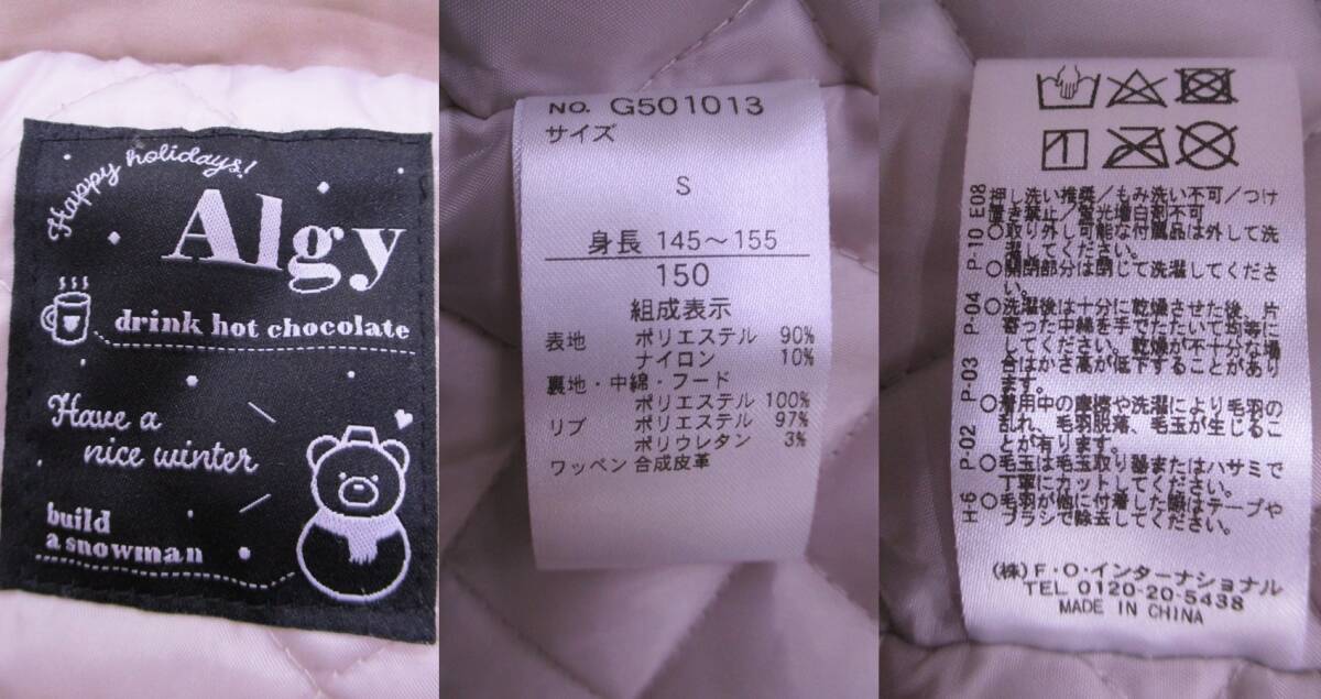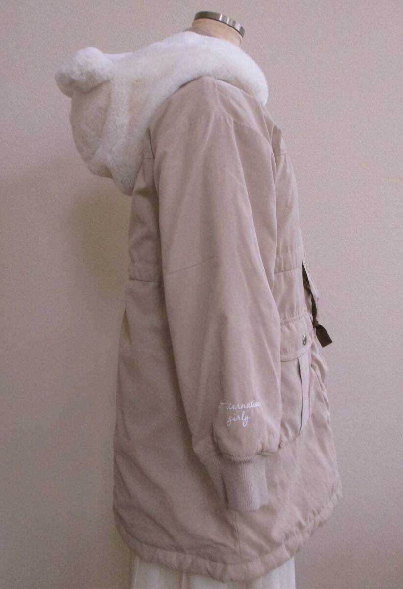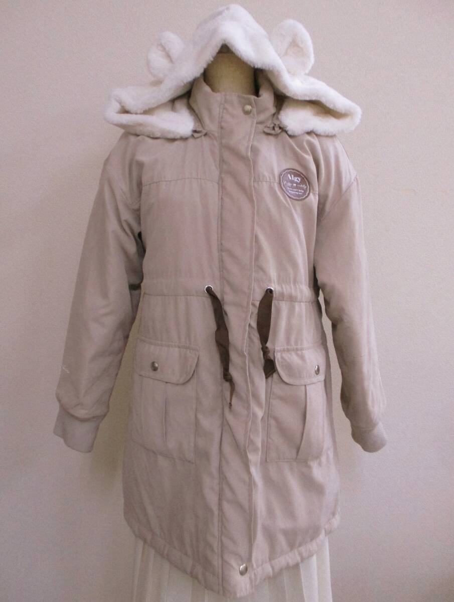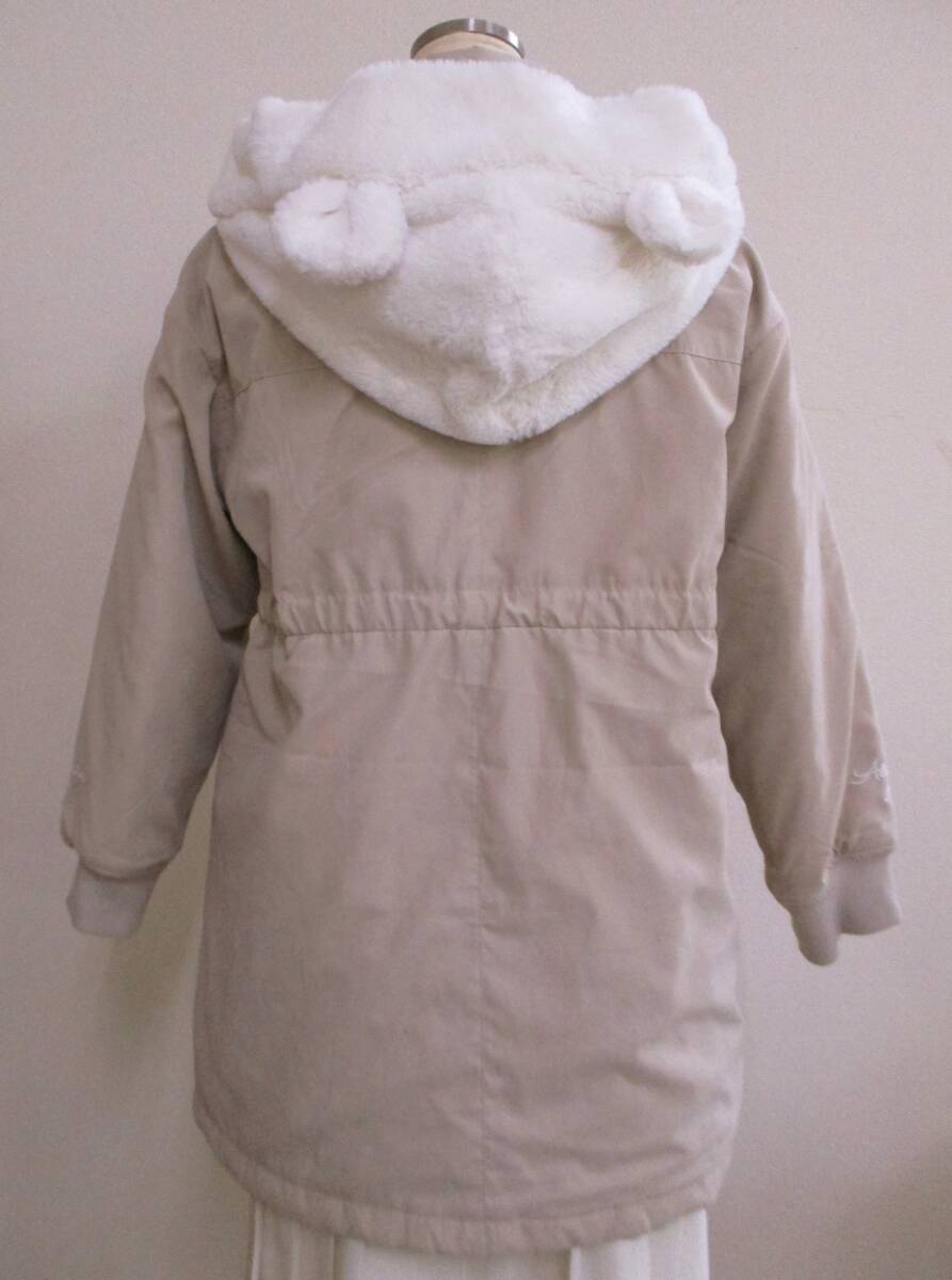 ☆2241【送料無料】Algy アルジー ジュニア 女の子 アウター くまみみフードモッズコート 150 ベージュ 中綿入り フード取り外し可