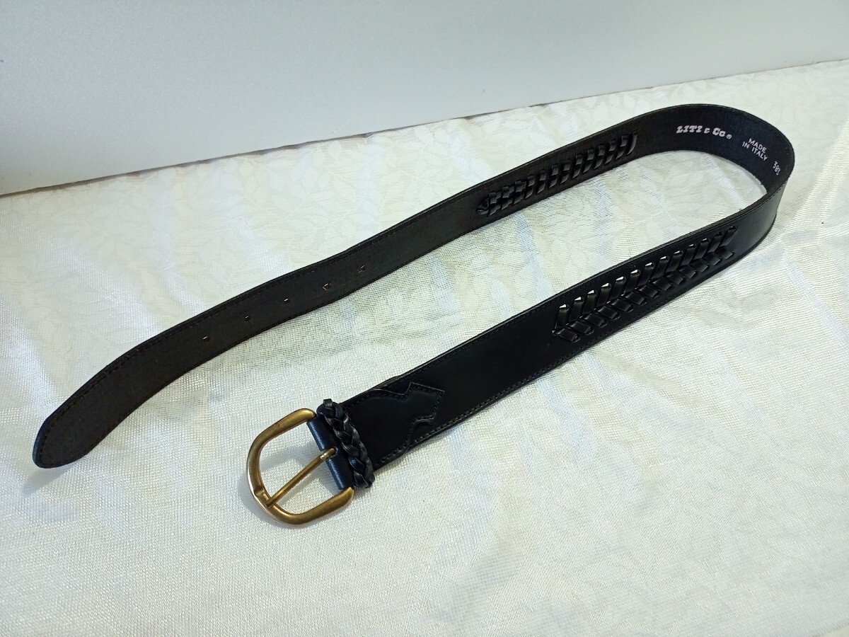 LITI&Co 一枚革ベルト MADE IN ITALY ウエスト74cm~84cm 38mm幅 黒色
