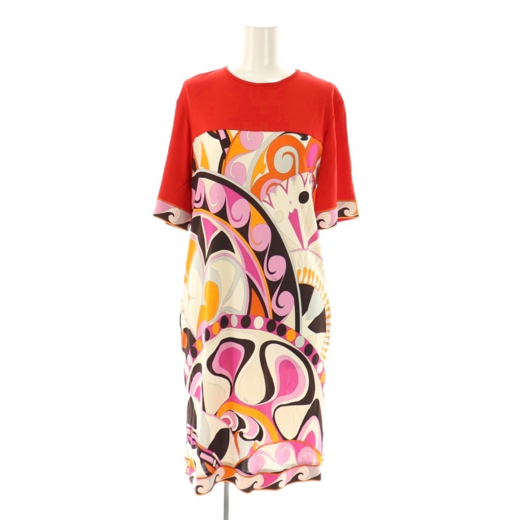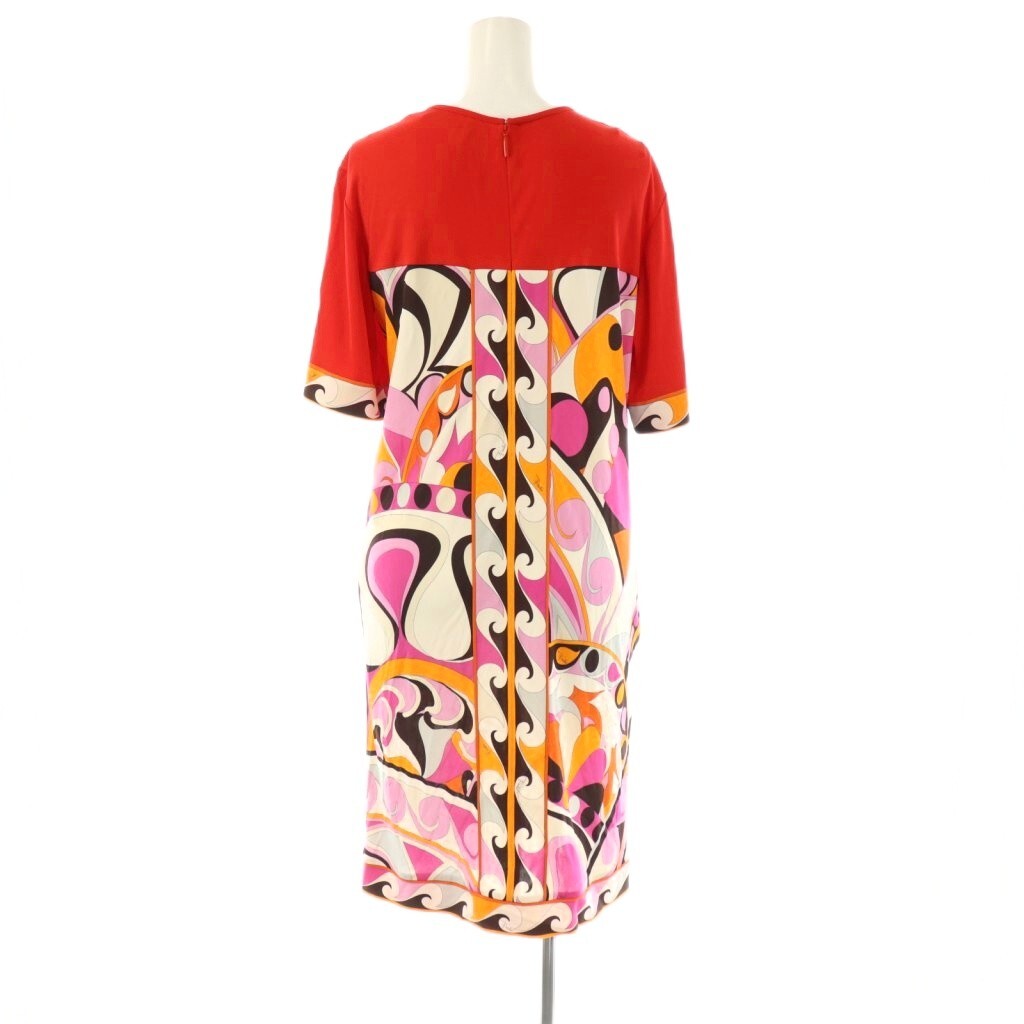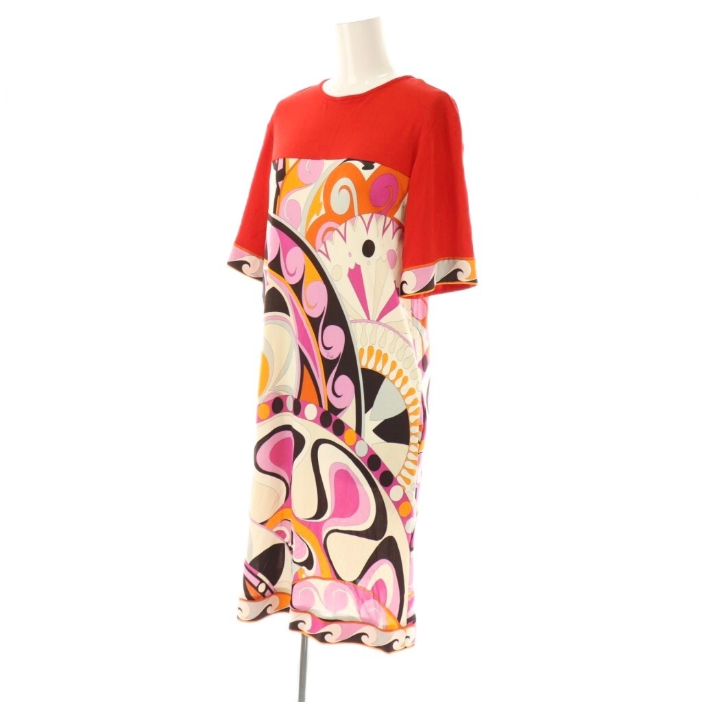 エミリオプッチ EMILIO PUCCI ARCHIVO プッチ柄レーヨンシルク混 切替ワンピース 半袖 I40 レッド マルチカラー /ES ■OS レディース