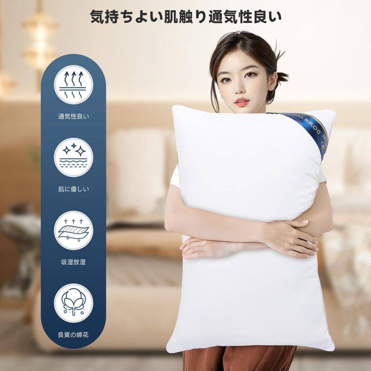 【適当な弾力性-復元力を持ち】厳選した3Dポリエステル素材をボリュームたっぷりに詰め込み、羽毛相当の柔らかさを持つ同時にふっくらとした復元力を実現します。ゆっくり頭の形に沿って沈み込み、包み込むようにやさしくフィットし、横向き寝・仰向け寝・うつ伏せ寝、お好きな寝姿でぐっすり眠れます。
