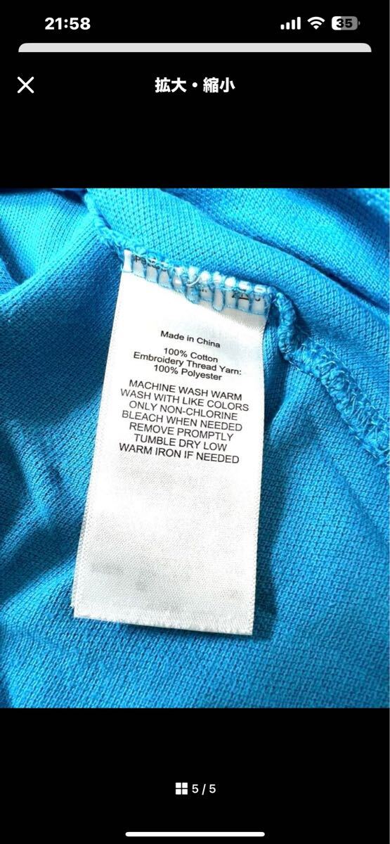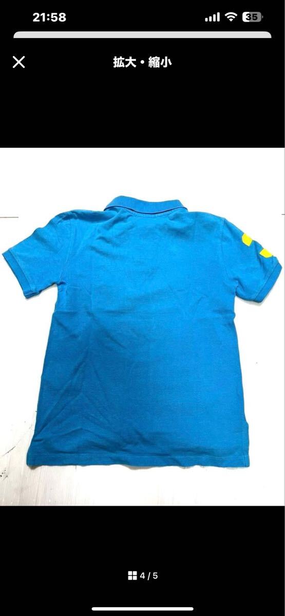 ポロラルフローレン Polo Ralph Lauren の青色のポロシャツ、黄色のビッグポニーの刺繍付き。