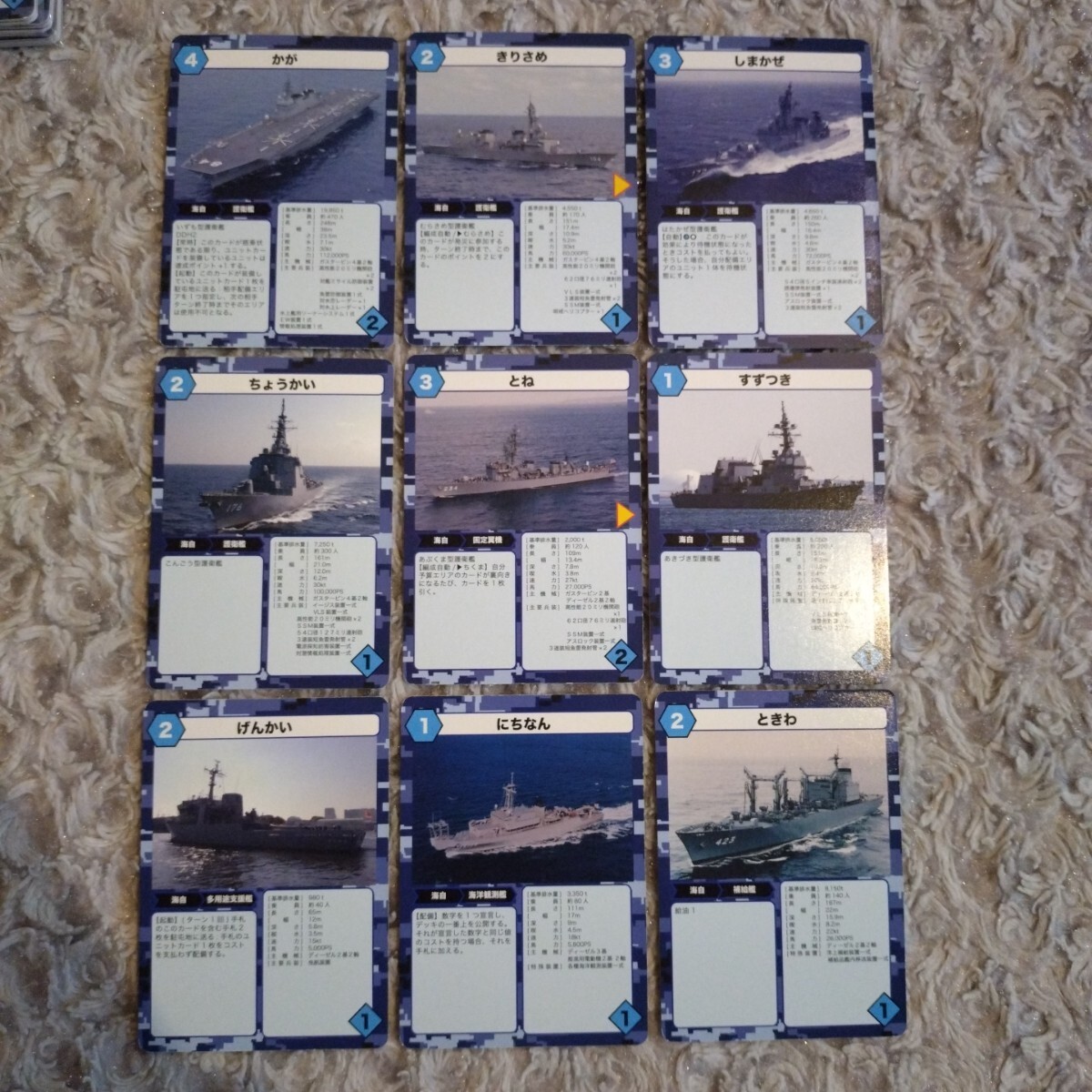自衛隊CG 海自版 第四護衛艦隊ver. の 艦艇カード9枚セット(かが、きりさめ、しまかぜ、ちょうかい、とね、すずつき、げんかい、にちなん、ときわ)です。