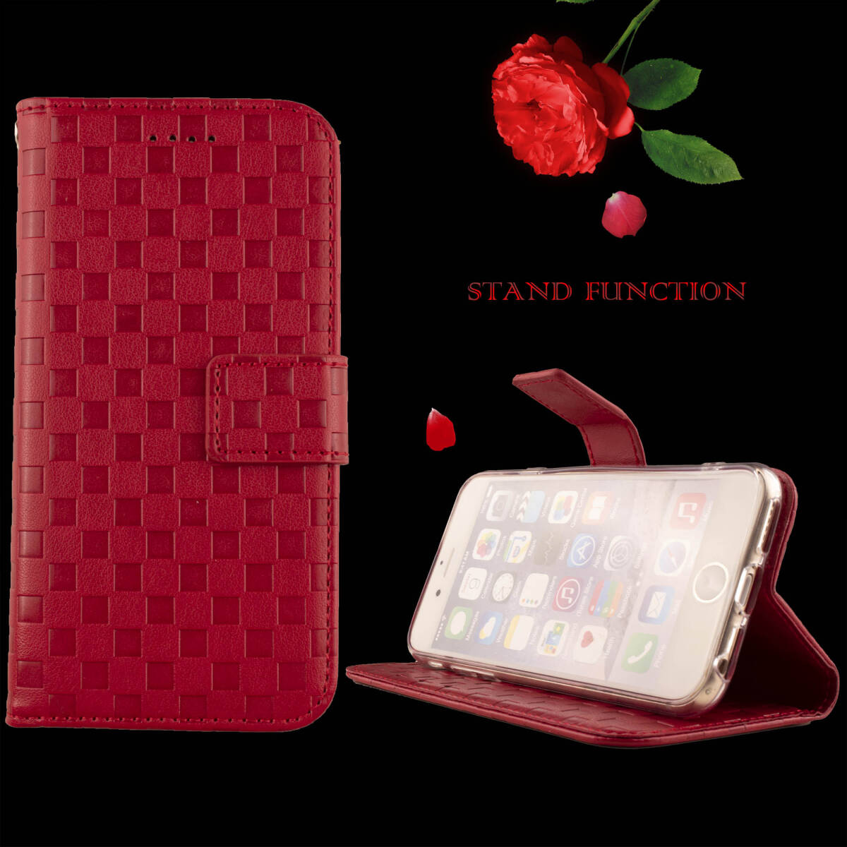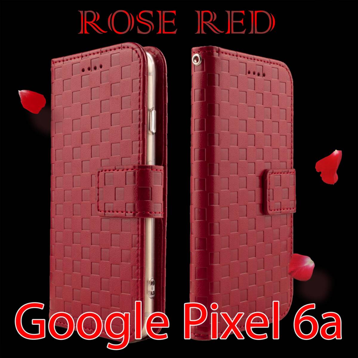 Google Pixel6a ケース 手帳型 カバー 赤 レッド Red シンプル 格子柄 革 レザー チェック ピクセル6a ベルト 送料無料 安い スマホケース