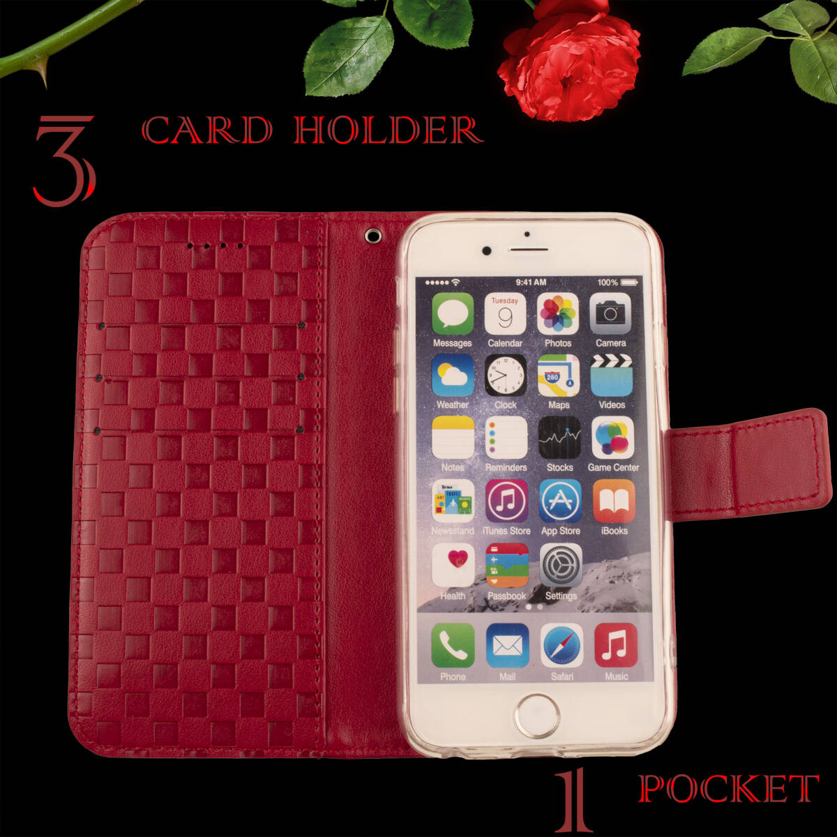 スタンド機能やカードポケット付きで多機能なケースです