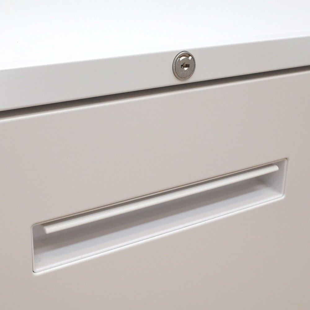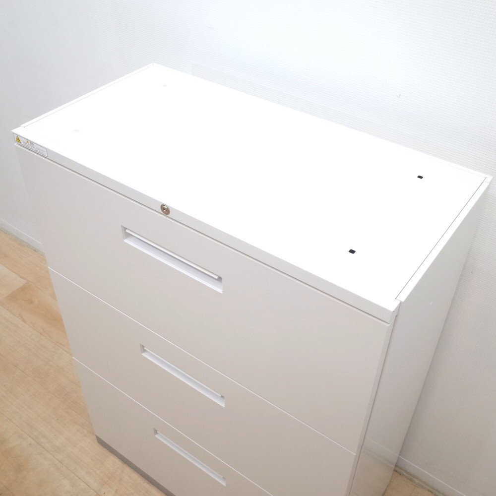 イナバの3段ラテラル書庫!すっきりとしたデザインのインテリアに合わせやすい収納家具です。 爽やかなホワイトカラーなのもポイント高! 引き出し3段でA4ボックスファイルを保管、管理のしやすいキャビネットです。 ロータイプなので、天板で資料整理ができたり、ちょっとした作業台としても重宝できます! 安全性も考慮!ラッチ付き扉で緊急時や災害時の引き出しの飛び出しを防ぎます。 フロアをスッキリ見せてくれる大容量キャビネット、おすすめです! |