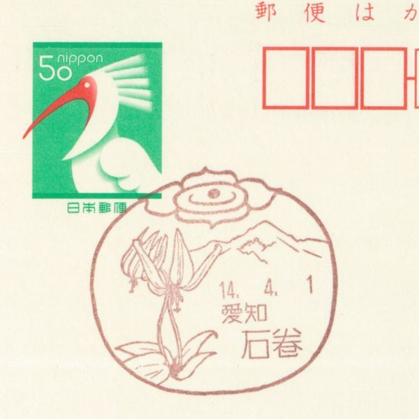 風景印☆初日☆愛知・石巻・H14.4.1・変形枠