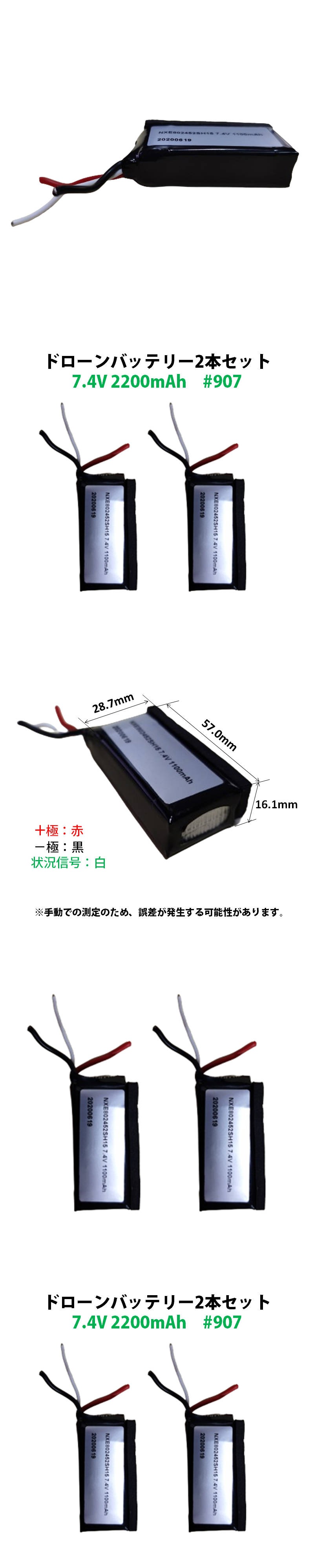 | ドローンの汎用バッテリー2本セットです。電圧:7.4V,容量:2200mAh |