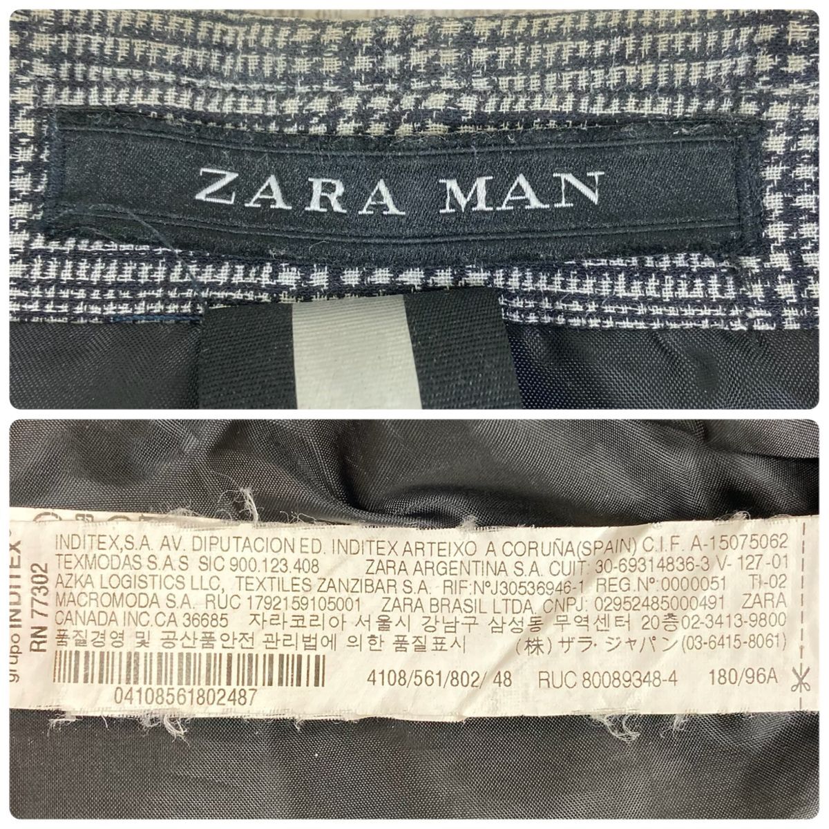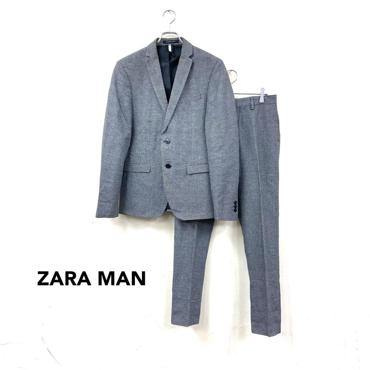 2O2544-Y◆ZARA MAN ザラ セットアップスーツ シングル センターベント 総裏 ノータックパンツ リネンブレンド◆size USA38 ブラック 綿 麻
