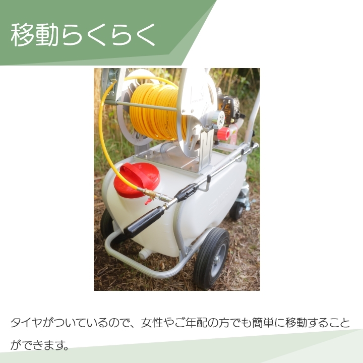 このガーデンスプレイヤーならタイヤ付きなので移動もラクチン。