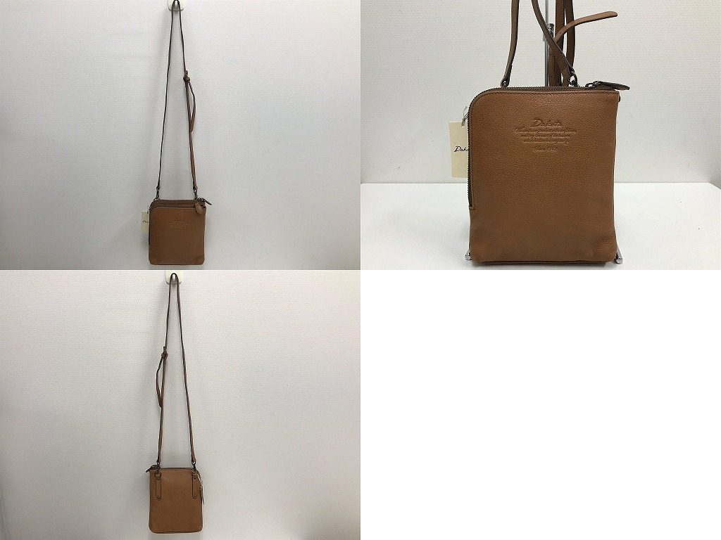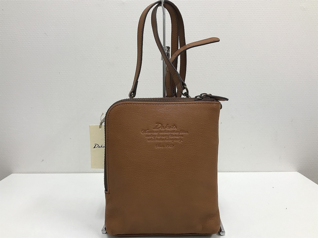 商品説明【未使用】 ダコタ Dakota タグ付き 上品でエレガントなお洒落の魅力 L字ファスナー 革 ショルダーバッグ 斜め掛け財布 鞄 でございます。  美しい光沢、厚みがあるのに手に馴染む柔らかさ、優れた縫製による仕立ての良さで高級な佇まいに魅了されます。 程よいマチと内ポケットが備わり、実用性も十分。 きれいめなスタイルはもちろん、カジュアルな着こなしにもマッチします。  使い込むほどふえていくスレやキズもあじがあり、魅力度が増して、変化を楽しんでいただけます。