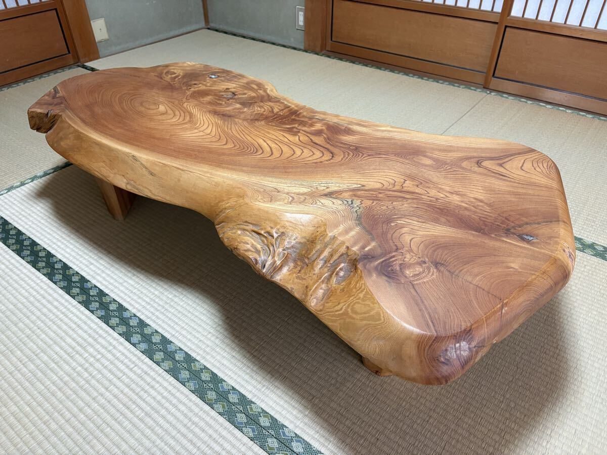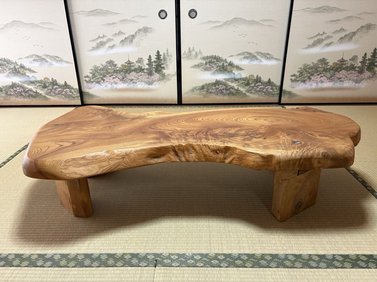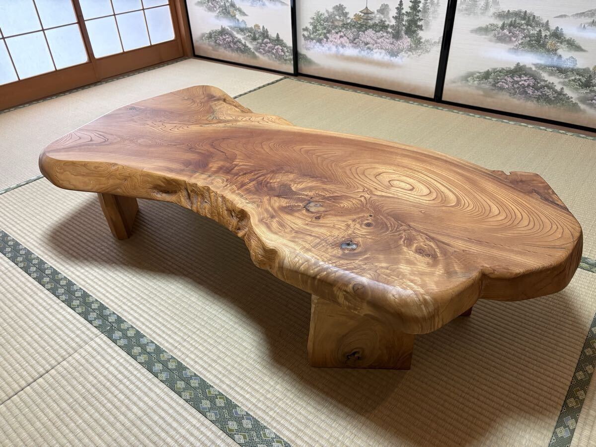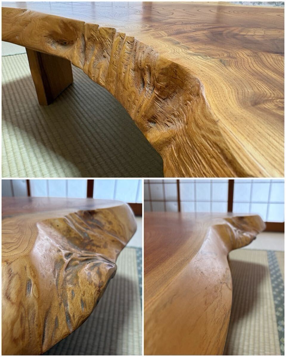 m 天然木 一枚板 座卓 木製テーブル ローテーブル 和家具 無垢材 ケヤキ 栃 耳付き 和モダン 茶室 民芸家具 インテリア コレクション◎