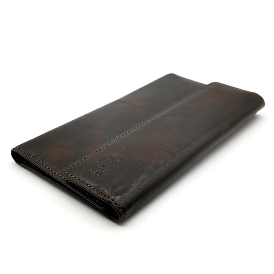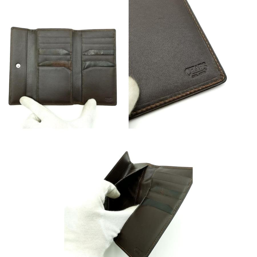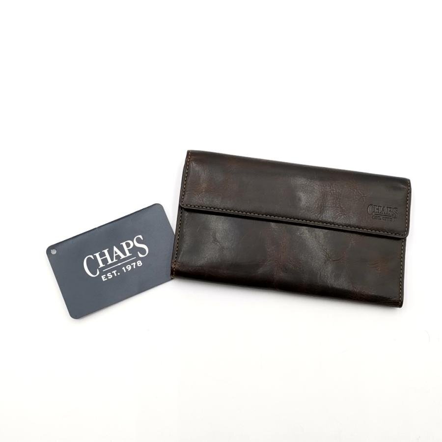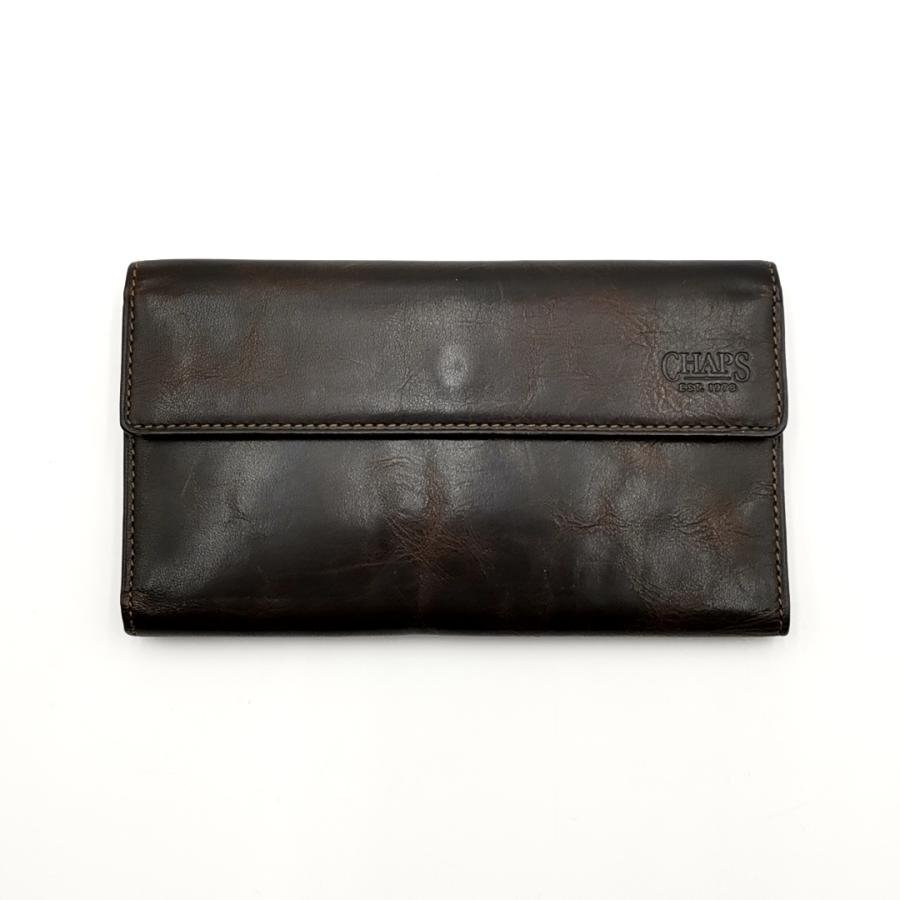 ・送料無料 超美品 チャップス CHAPS 長財布 財布 三つ折り ロングウォレット CPW-9077KW レザー 本革 茶 ブラウン系 メンズ