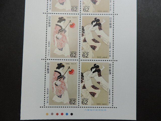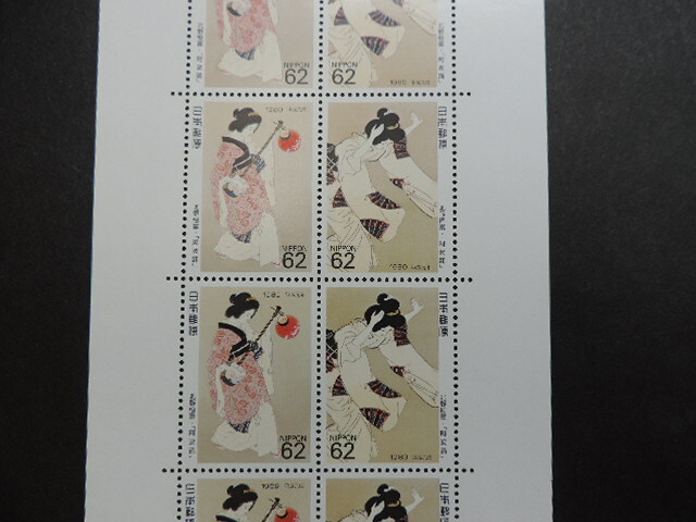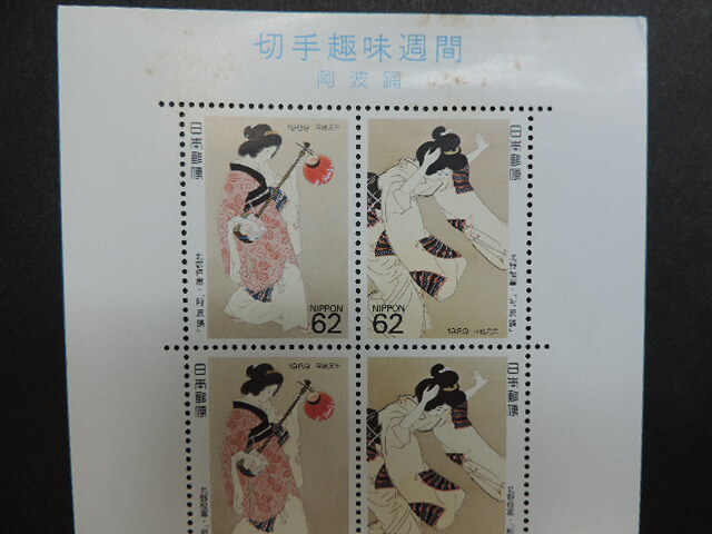 ★阿波踊・北野恒富★   切手趣味週間   平成元年   62円切手×10枚   620円分    額面割れ   新品・未使用