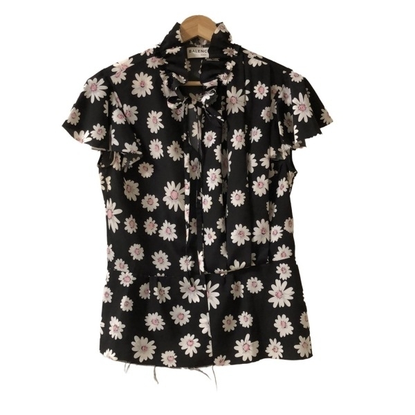 バレンシアガ BALENCIAGA ノースリーブカットソー サイズ38 M 505930TYA06 - 黒×白×マルチ レディース Vネック/フラワー(花) トップス
