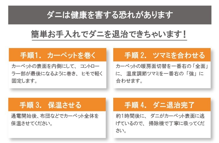 〇素材 | ホットカーペット本体:表面材質:ポリエステル100% カバー:表 ポリエステル 100%、中 ポリエステルわた、裏:不織布 |
