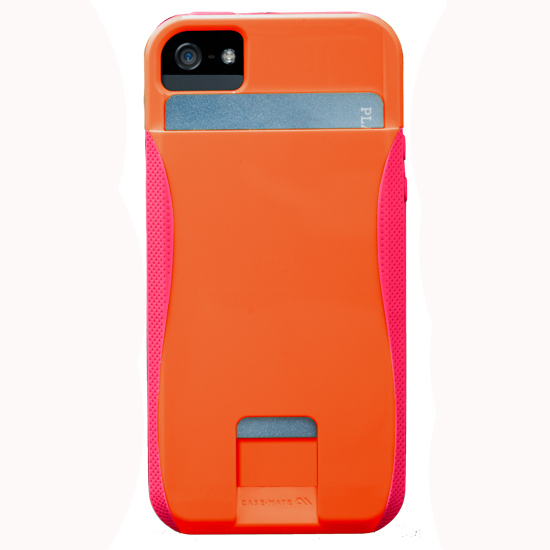 Case-Mate iPhoneSE(第一世代,2016)/5s/5 用 POP! ID カードホルダー付 ハイブリッド シームレス ケース, タンジェリンオレンジ/リップスティックピンク 【自動改札機エラー防止シート付属】