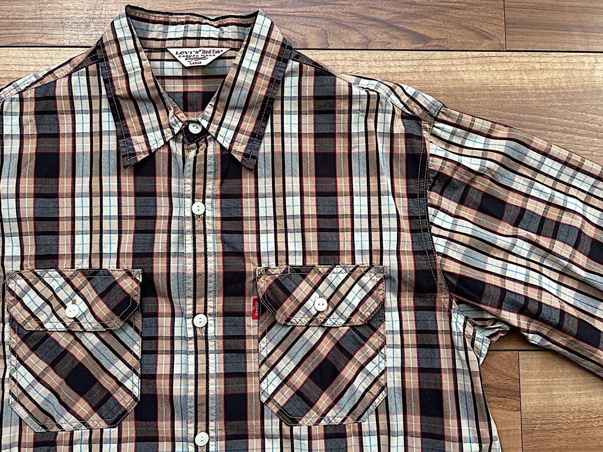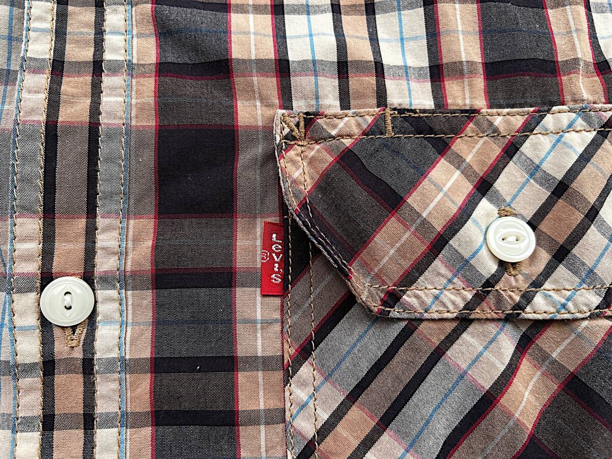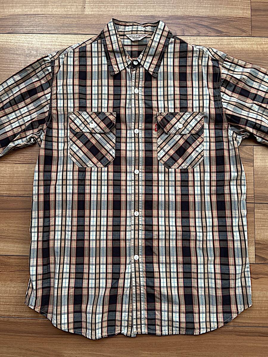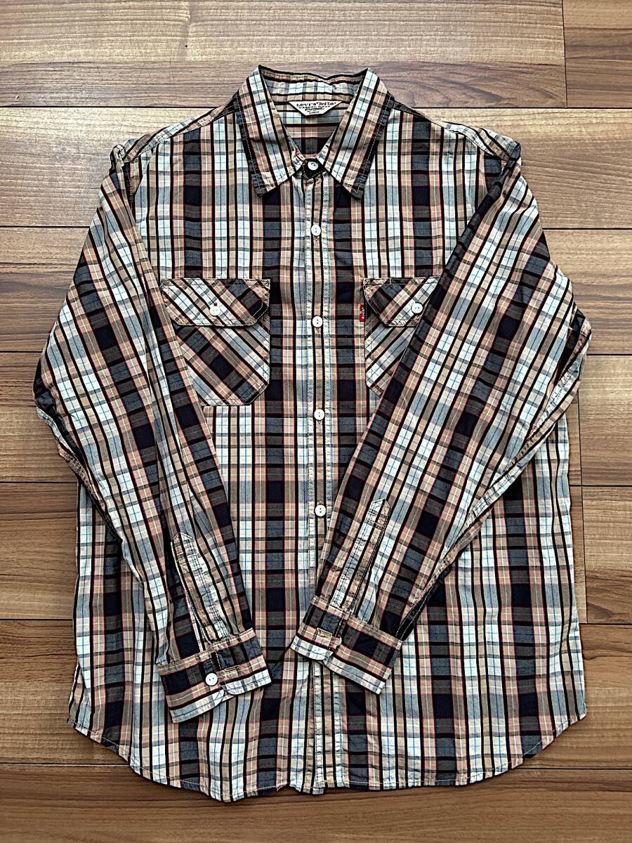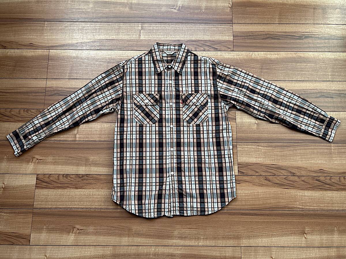 送料185円 Lサイズ Levi's リーバイス 60533 ワーク チェックシャツ ポプリン 長袖 ベージュ系 アメカジ 古着