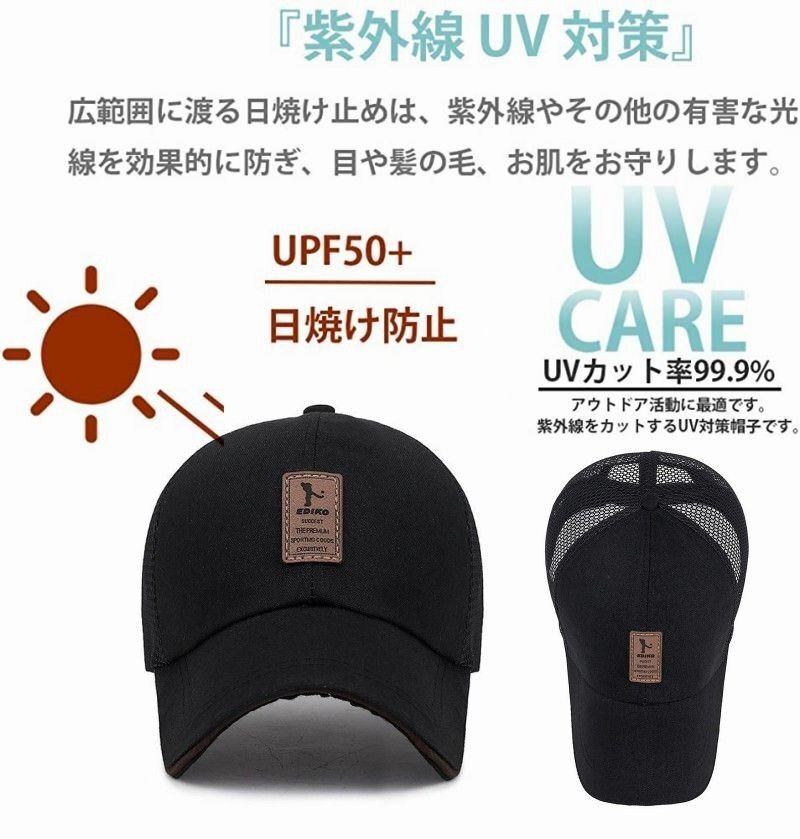 キャップ メンズ 帽子 メッシュ メンズ 無地 帽子 通気性 UVカット 紫外線対策 日よけ 野球帽 登山 釣り ゴルフ 運転-ブラック+コーヒー