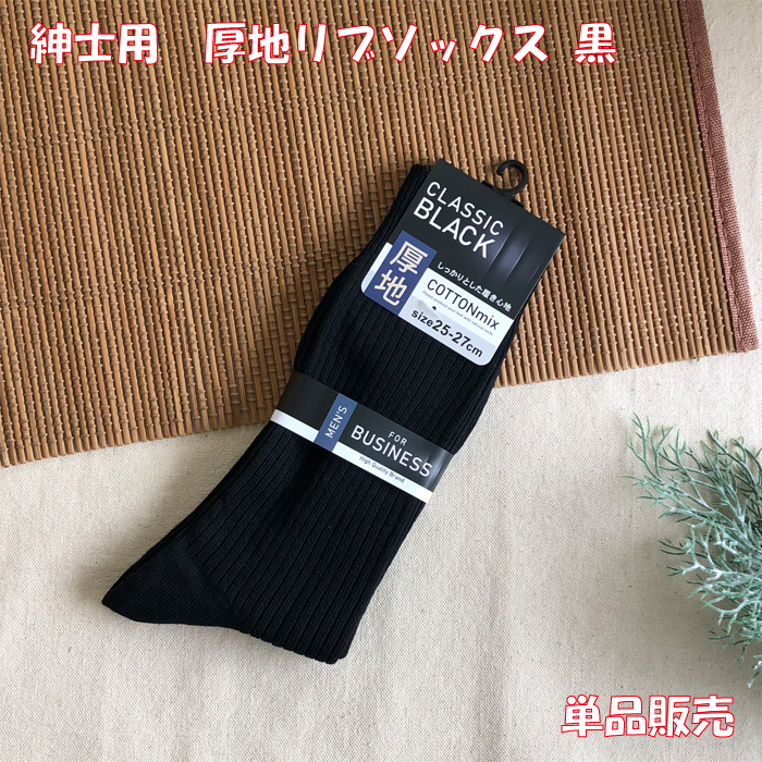 | 紳士用 厚地 リブソックス 黒 25~27cm 単品販売 |
