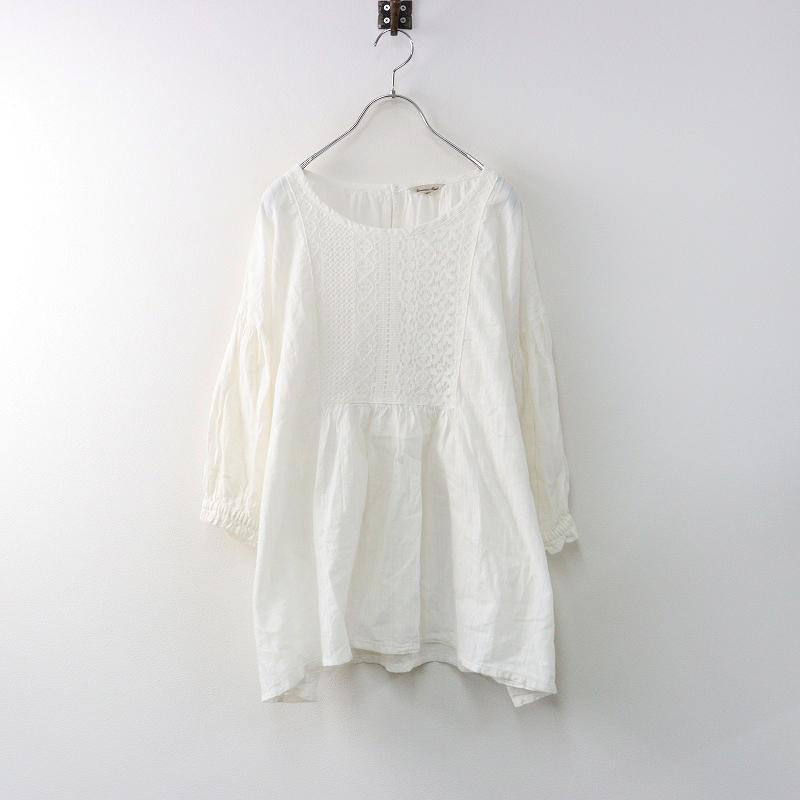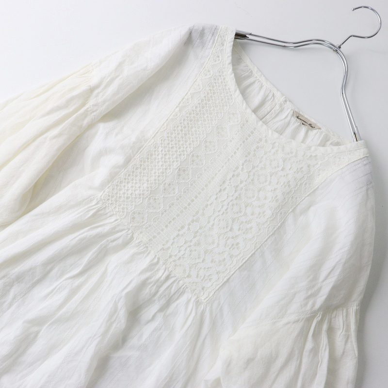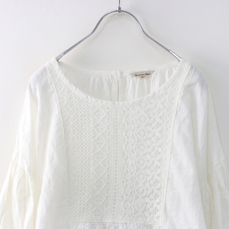 サマンサモスモス Samansa Mos2 レース貼りパフスリーブブラウス F|オフホワイト トップス レース カットソー【2400014662306】